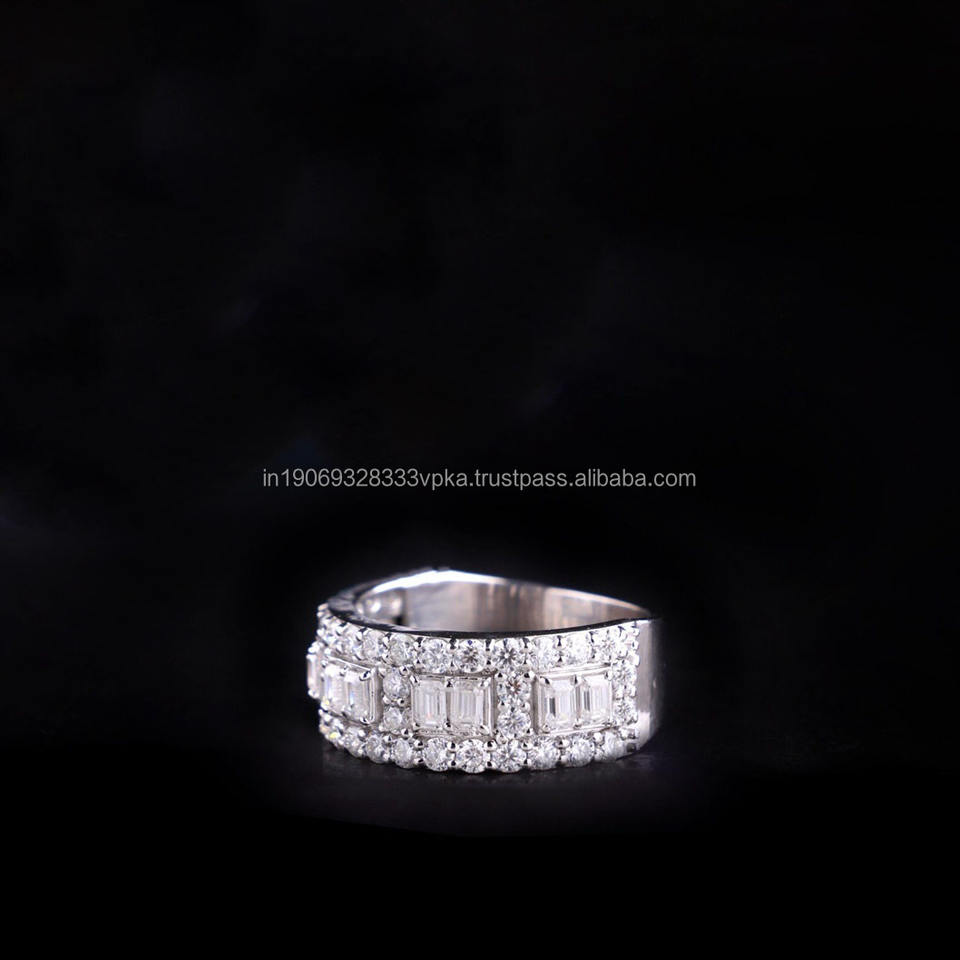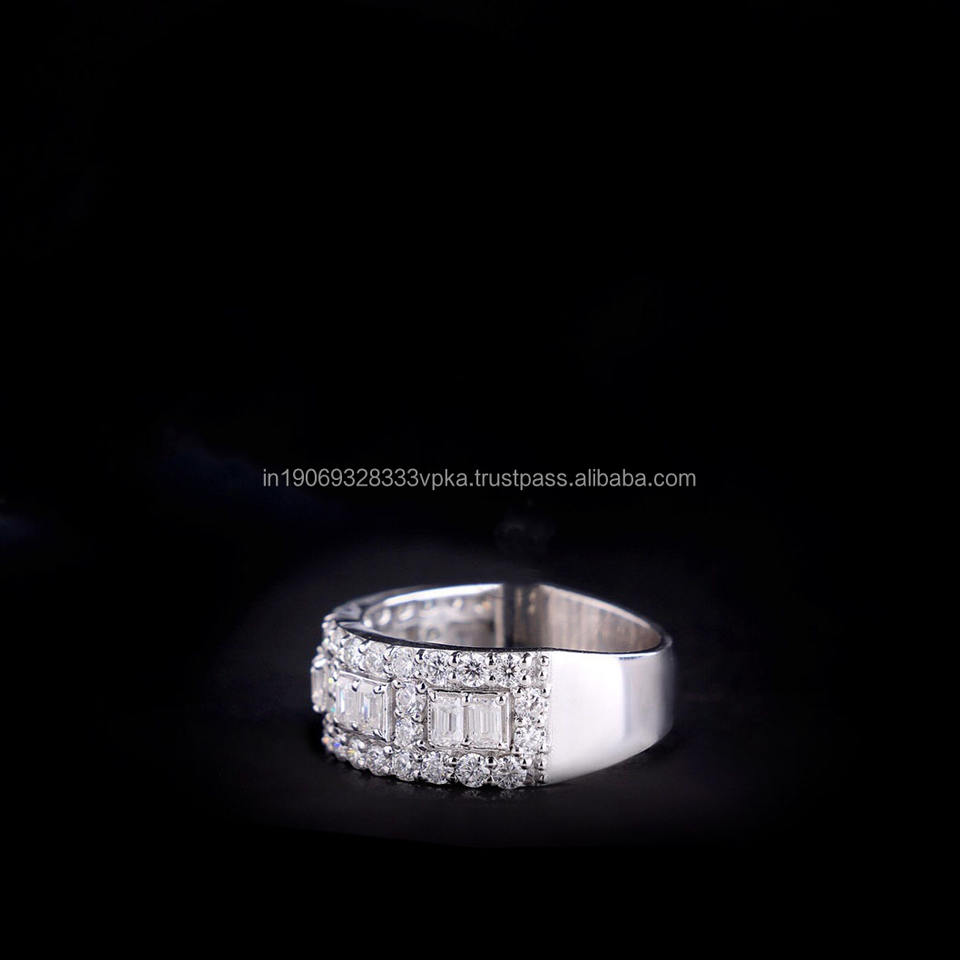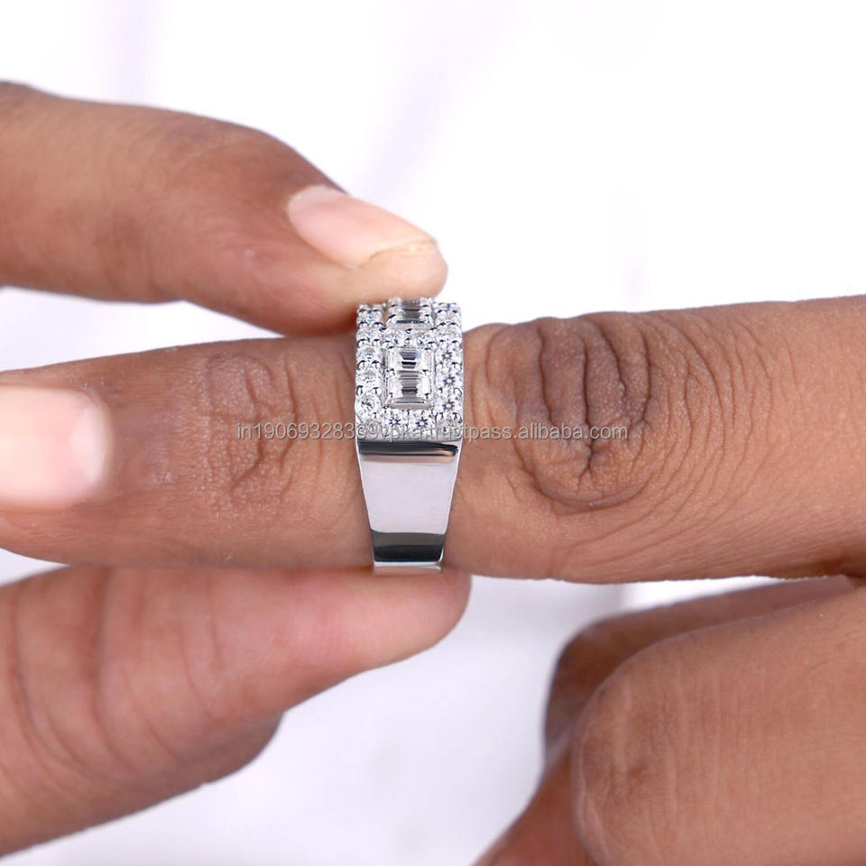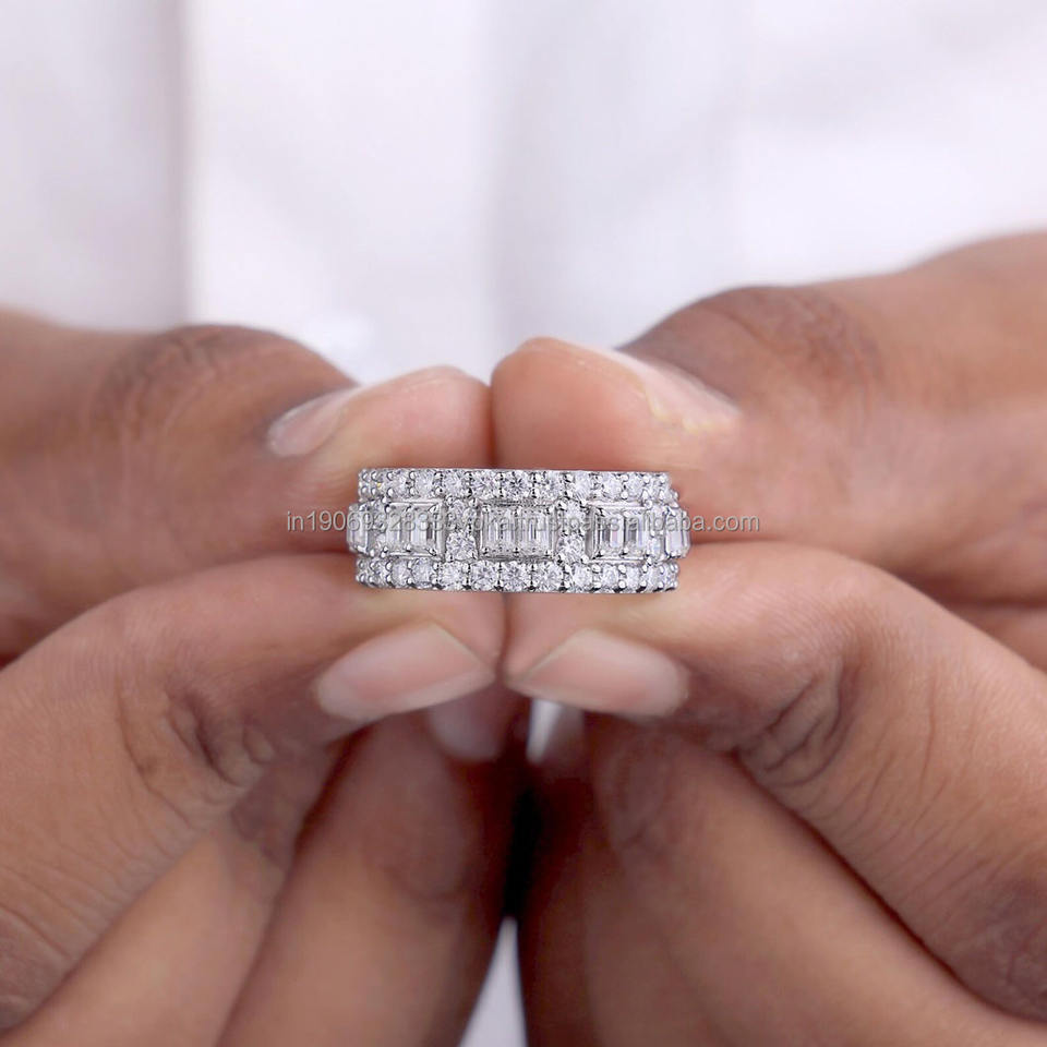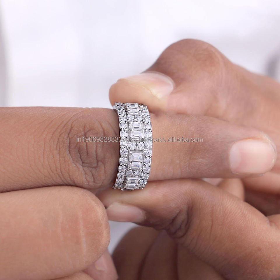 แหวนแต่งงานผู้ชายแบบครึ่งวงประดับมอสซาไนต์ทรงเหลี่ยมมรกต เงินแท้ 925 ตัวเรือนแบบหนามเตย แหวนหมั้นคลาสสิก ของขวัญ