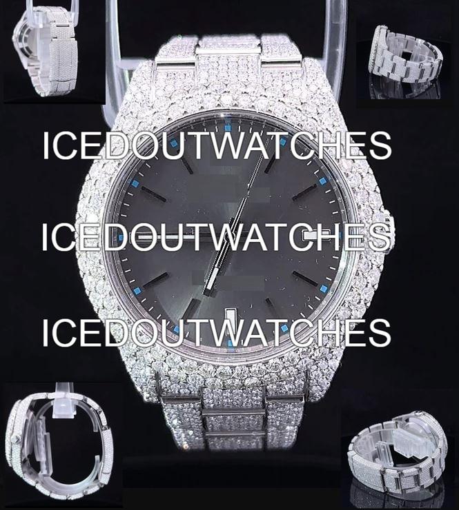 นาฬิกาข้อมือผู้ชายแบบอัตโนมัติ หน้าปัดกระจกประดับเพชรโมอิสซาไนต์ ขอบตัวเรือนสแตนเลส กันน้ำ 10 บาร์ สายแบบหัวเข็มขัด
