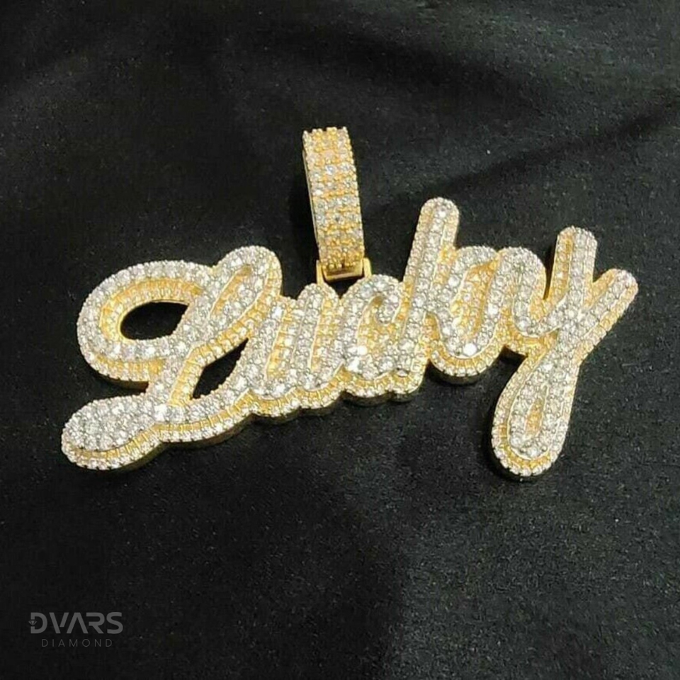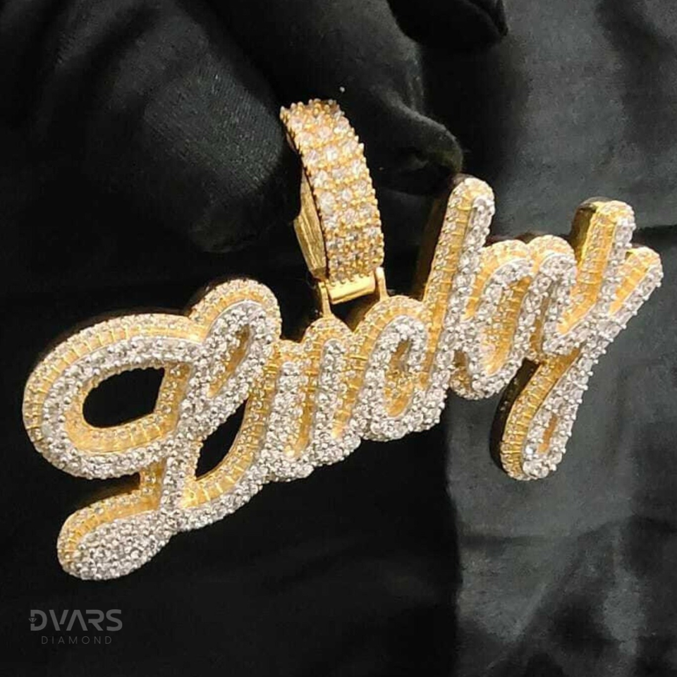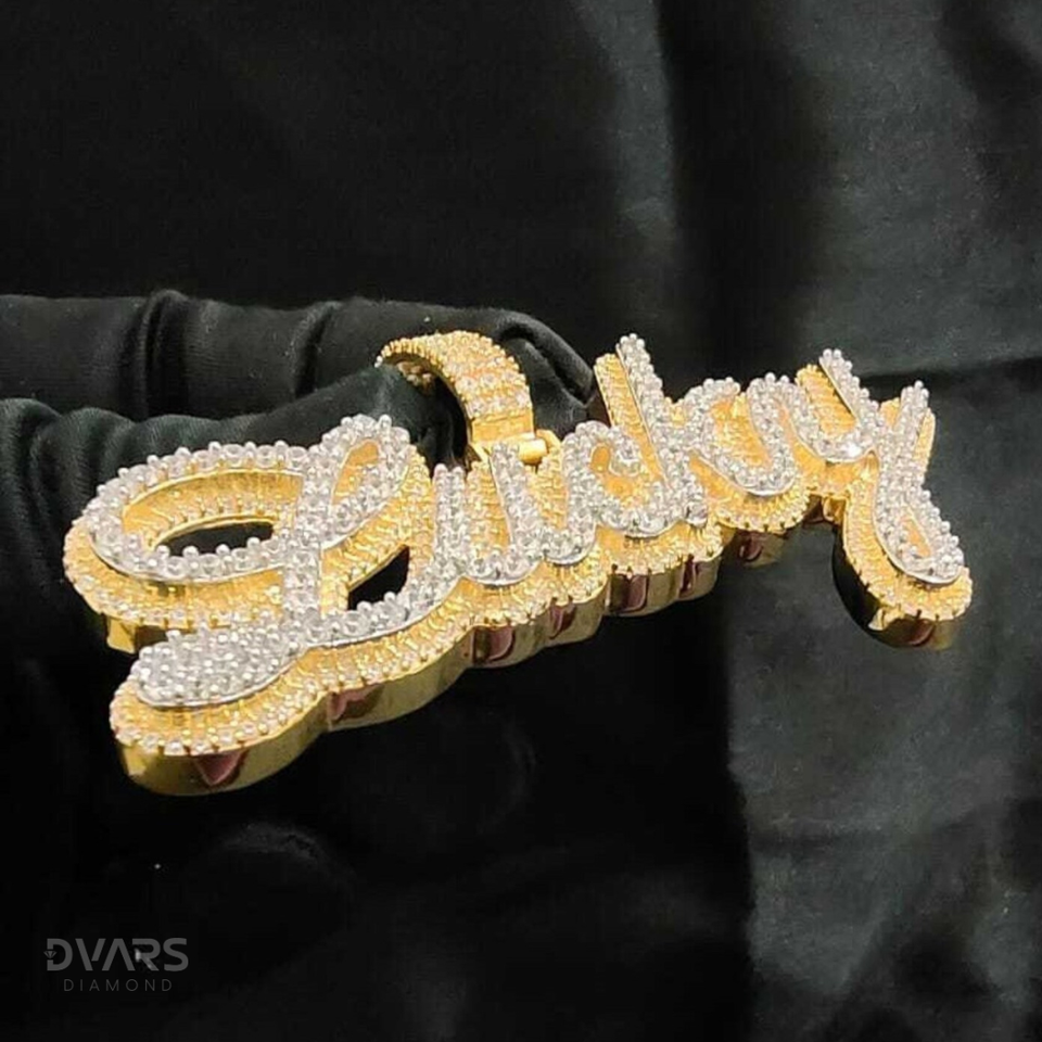 แผ่นป้ายนำโชคแบบกำหนดเองของผู้ชายจี้ชื่อตัวอักษรสองโทนวิบวับ VVS Moissanite 925สเตอร์ลิงเงิน18K ชุบทอง18K