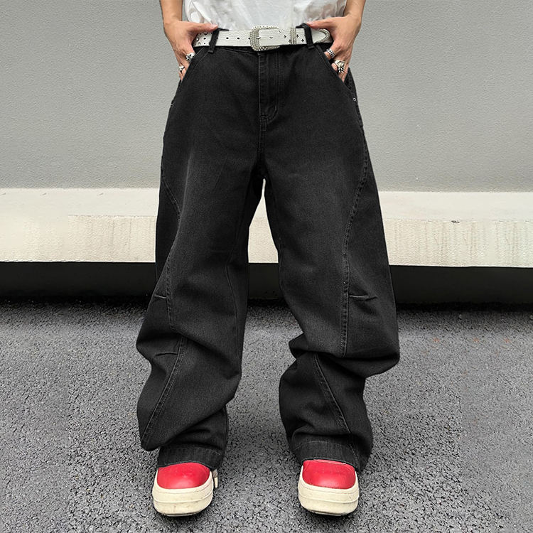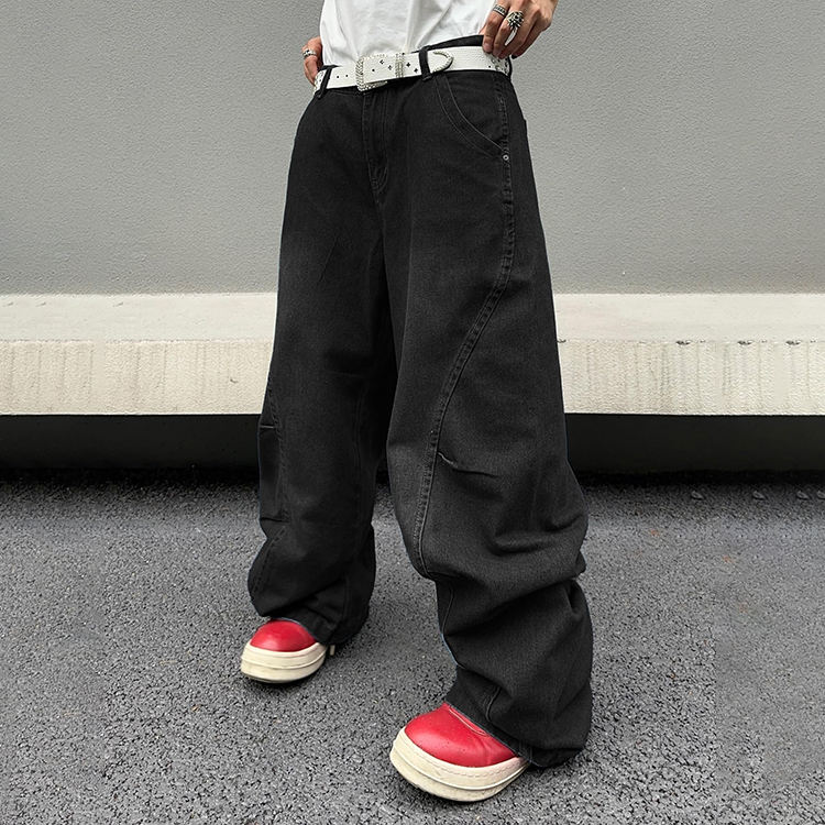 กางเกงยีนส์ฮิปฮอปกระบอก Y2k ของผู้ชาย, กางเกงยีนส์ขาบานกางเกงทรงหลวมลำลองแนวสตรีทแวร์