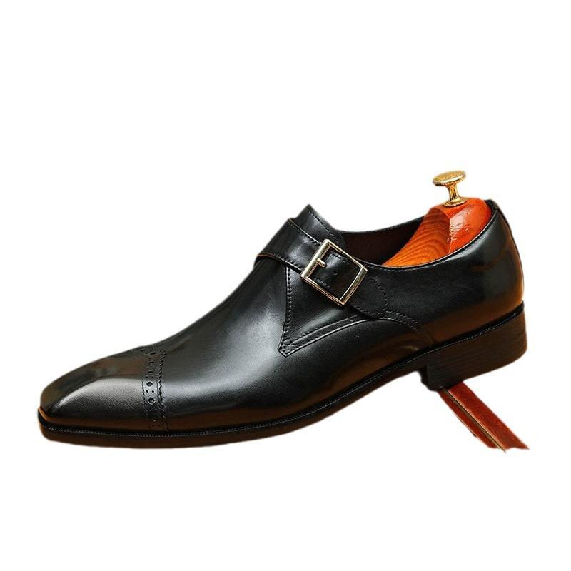 รองเท้าหนังแท้สไตล์อิตาลีสำหรับผู้ชาย รองเท้าหนังแบบทางการสำหรับธุรกิจ รองเท้าแบบมอนก์สตรีทพร้อมหัวเข็มขัด รองเท้าสุภาพบุรุษแบบ Horsebit