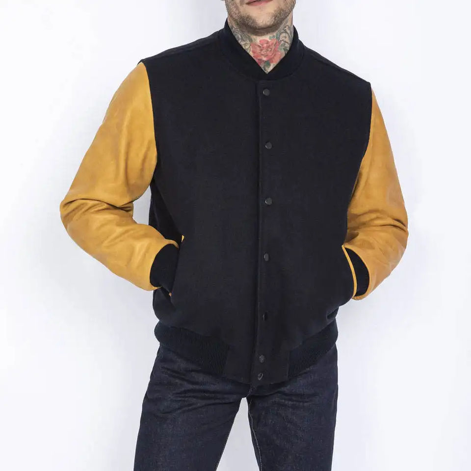 เสื้อแจ็กเก็ตสำหรับผู้ชายเสื้อแจ็กเก็ตเบสบอลเสื้อกีฬาลำลองทรงหลวมโลโก้สีออกแบบได้ตามที่ต้องการ