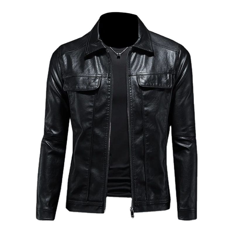 แจ็กเก็ตผู้ชายสำหรับฤดูใบไม้ผลิและฤดูใบไม้ร่วง, เสื้อโค้ทหนังคอปกสีทึบสำหรับใส่ขี่มอเตอร์ไซค์เสื้อแจ็กเก็ตหนังแฟชั่นแบบบางสำหรับ M-5XL