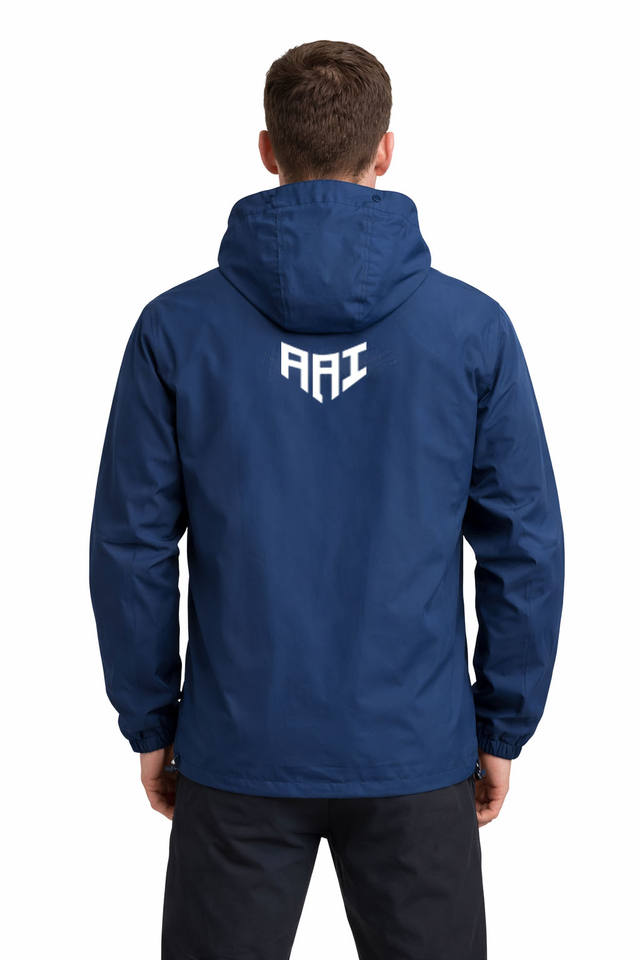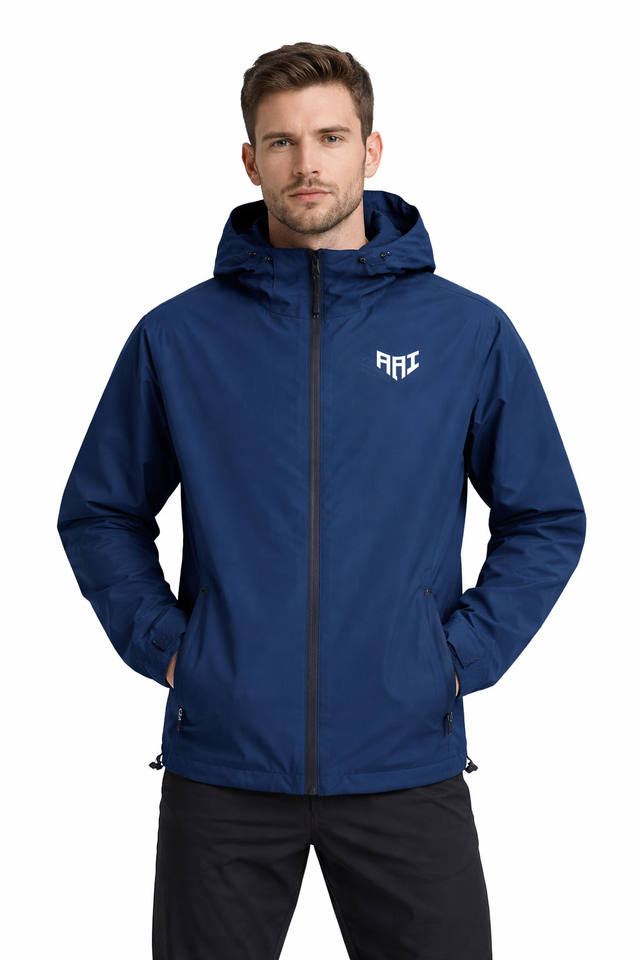 เสื้อแจ็คเก็ตผู้ชาย "ขายส่งเสื้อแจ็คเก็ตกันน้ำสีน้ำเงินสไตล์สตรีทแวร์สำหรับผู้ชาย แบบสั่งทำพิเศษพร้อมฮู้ดปรับได้"