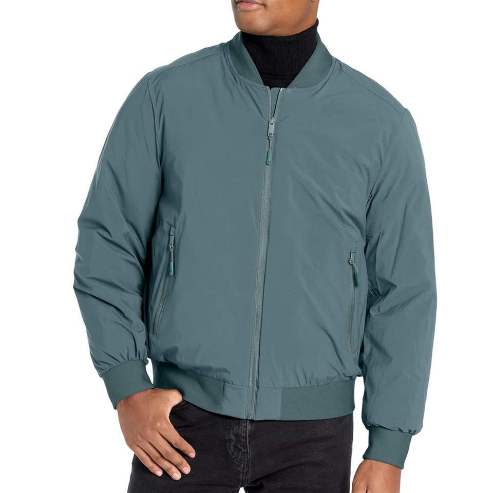 เสื้อแจ็คเก็ตบอมเบอร์ผู้ชายสำหรับฤดูหนาว ผ้าแคนวาส คอตั้ง โลโก้ด้านหน้า ปรับแต่งได้ ระบายอากาศได้ดี ซับในขนแกะ น้ำหนักเบา เคลือบผิว บริการ OEM