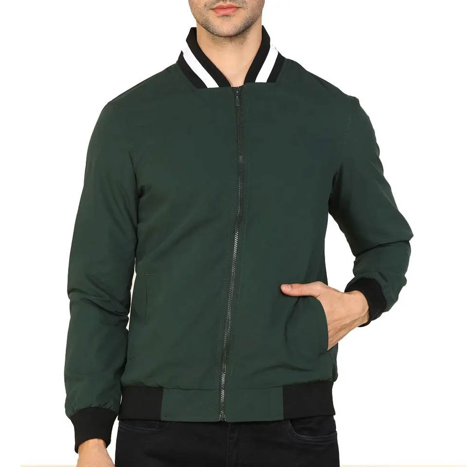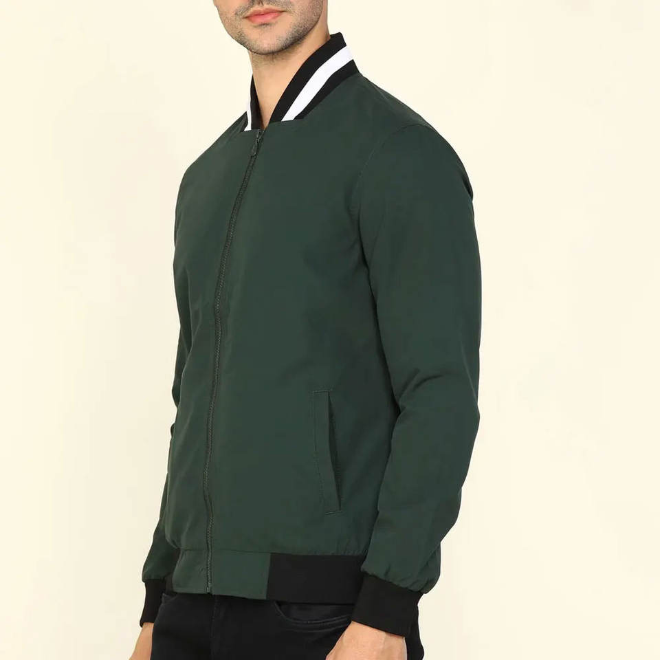 แจ็คเก็ตบอมเบอร์สีเขียวเข้มมีซิปหน้าสำหรับผู้ชาย