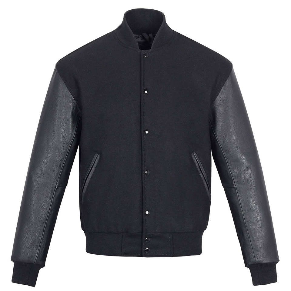 แจ็คเก็ตผู้ชายสไตล์ล่าสุด แขนยาวหนังสีพื้น แจ็คเก็ตวาร์ซิตี้ผู้ชายคุณภาพสูง ขนาดสั่งทำพิเศษ