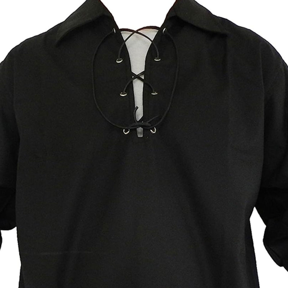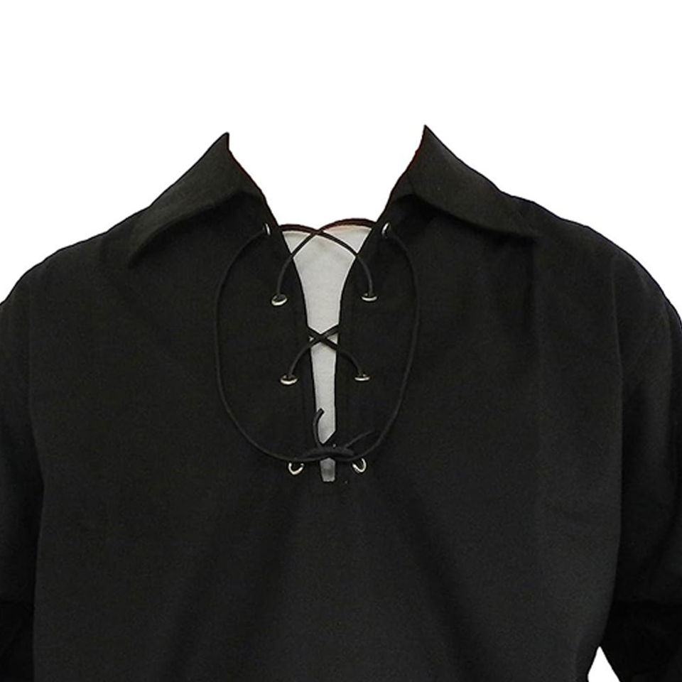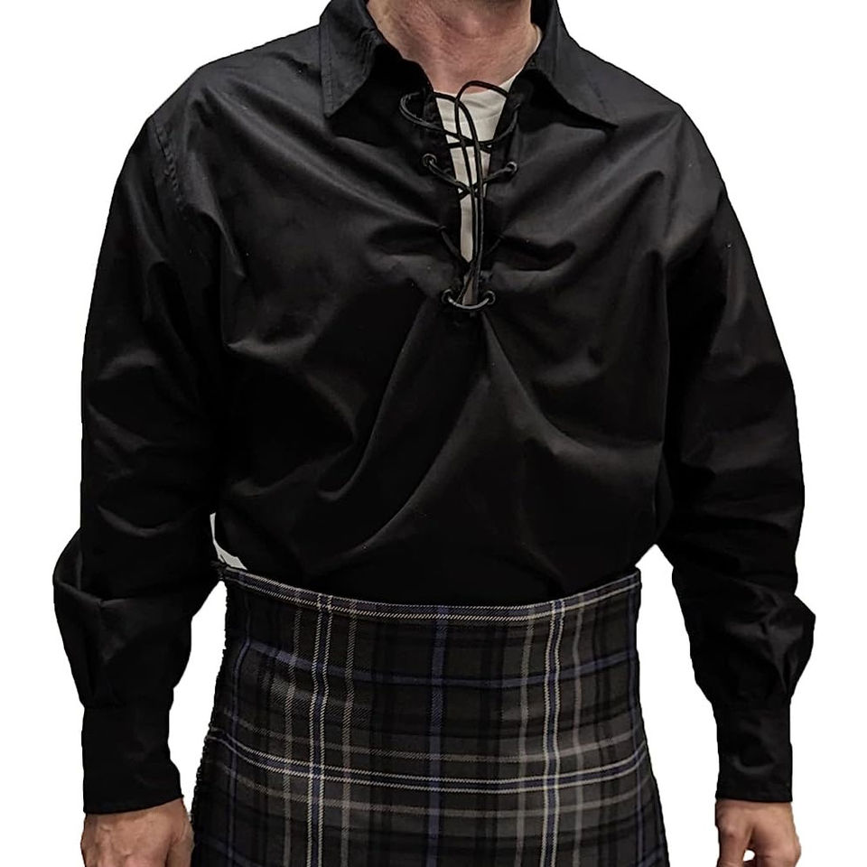 เสื้อเชิ้ตผู้ชายสไตล์เจค็อบไลท์ ผ้าลินิน แขนยาว แบบผูกเชือก สก็อตติช แจ็คโอบไลท์ กิลลี่ คิลท์ ชิร์ต เสื้อเชิ้ตผู้ชายสไตล์เจค็อบไลท์ กิลลี่ คิลท์ สก็อตติช