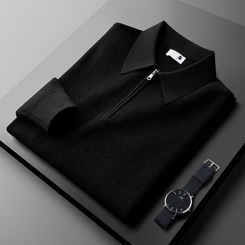เสื้อสเวตเตอร์ผู้ชายเนื้อผ้าทึบ ไม่เป็นขุย สำหรับฤดูหนาว ถักแบบวาฟเฟิล ทรงหลวม ผ้าเทอร์รี่ สำหรับฤดูใบไม้ร่วง สีพื้น