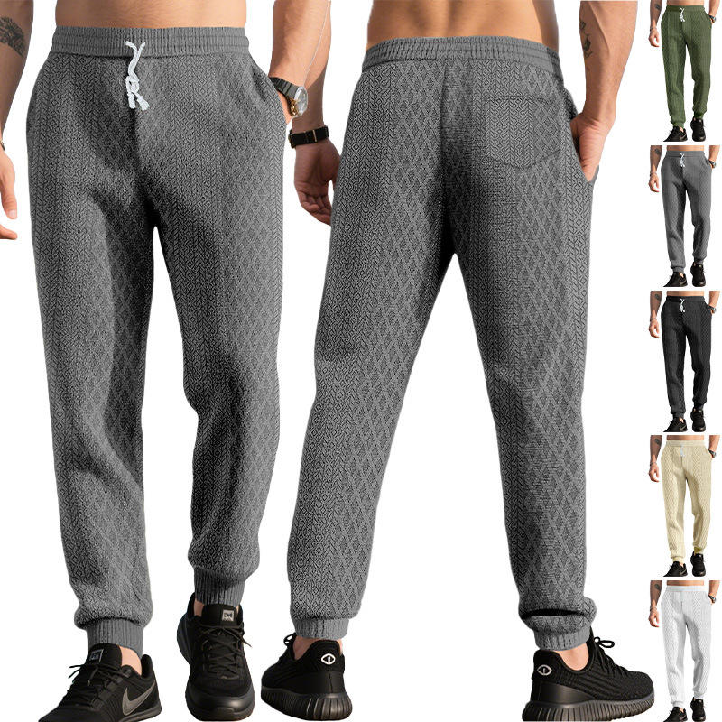 กางเกงวอร์มแจ็คการ์ดผู้ชายเอวยางยืดบางระบายอากาศได้ดีกางเกงลำลองสตรีทแวร์พร้อมป้ายขนาด M L XL XXL