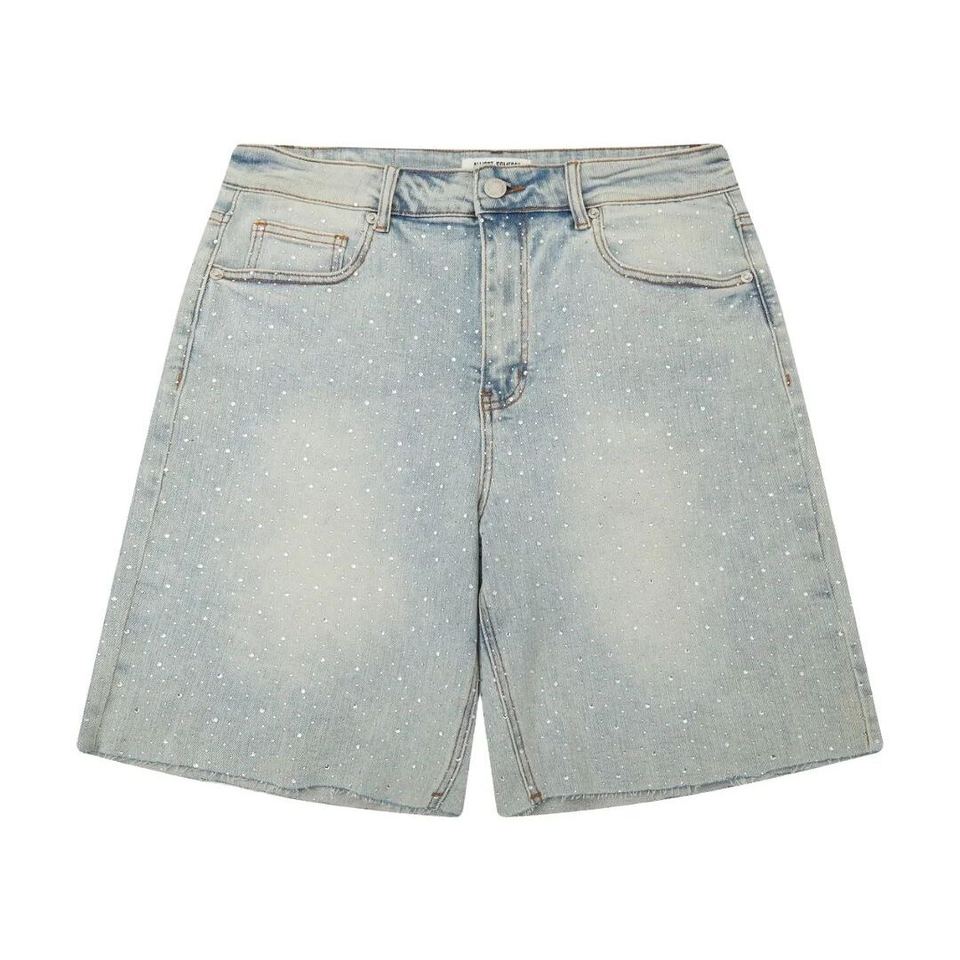 กางเกงยีนส์ทรงหลวมโอเวอร์ไซส์สำหรับผู้ชายกางเกงขาสั้นของผู้ชายกางเกงยีนส์ซักเย็บโลโก้ออกแบบได้ตามต้องการ