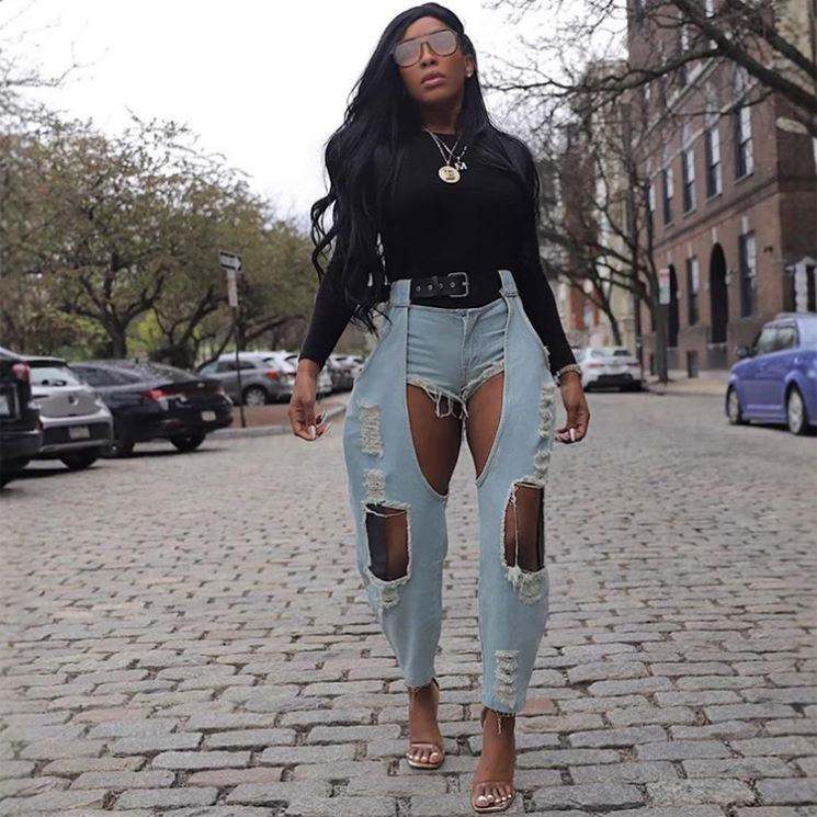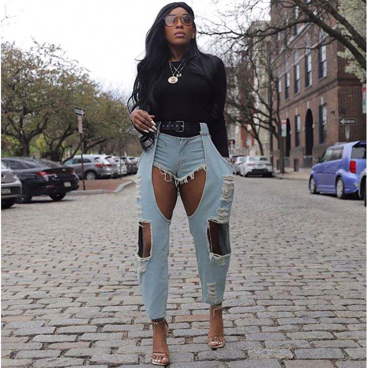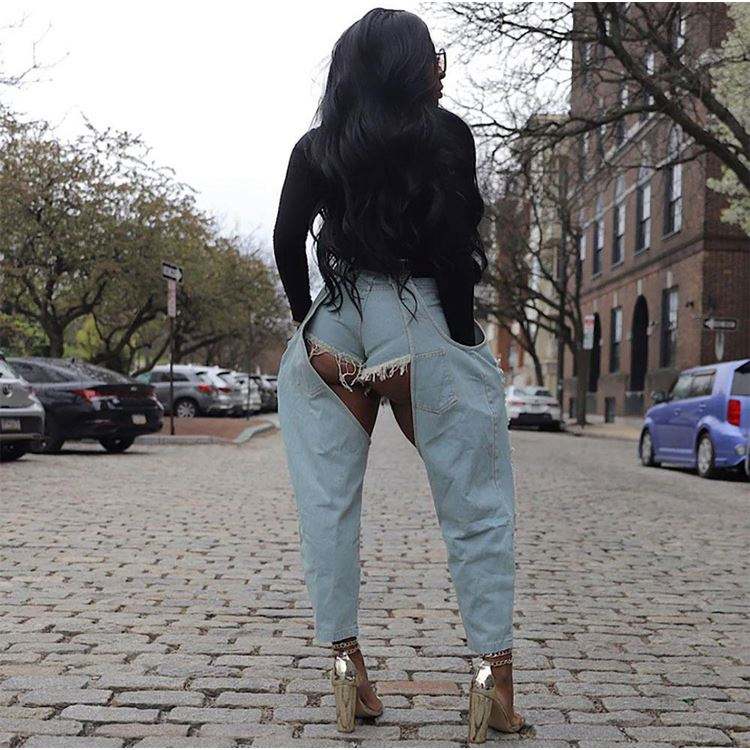 กางเกงยีนส์ผู้ชายสีดำขาดรุ่ยแต่งปะ ทรงสลิมฟิต แฟชั่นสกินนี่ยีนส์ ผ้ายืด