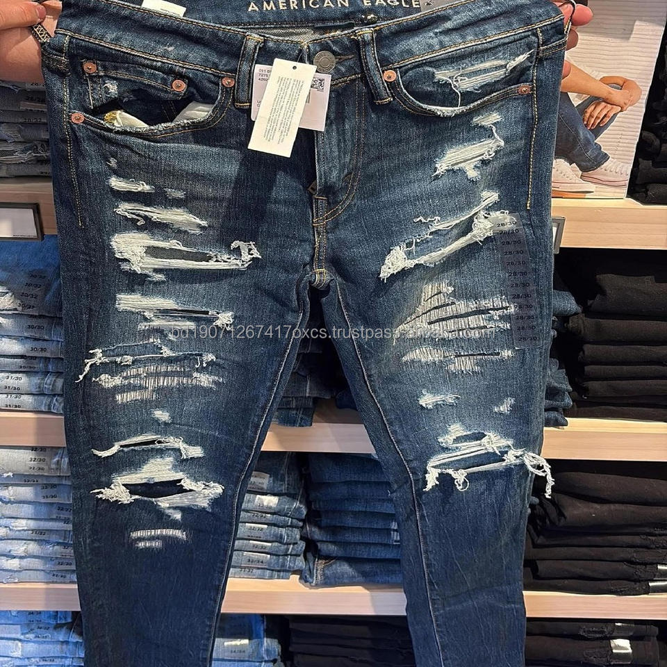 กางเกงยีนส์ผู้ชายสไตล์อังกฤษ สีเข้ม ขาดๆ ยืดได้ ทรงตรง กางเกงยีนส์ลำลองผู้ชาย แบรนด์ดัง คละแบบ มีสินค้าในสต็อก กางเกงเดนิม