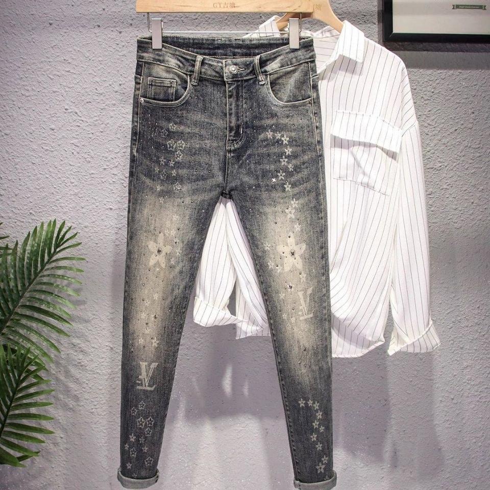 กางเกงยีนส์ขายาวสำหรับผู้ชายกางเกงยีนส์ขาแคบขาดจากสินค้าแบรนด์ดังของจีน
