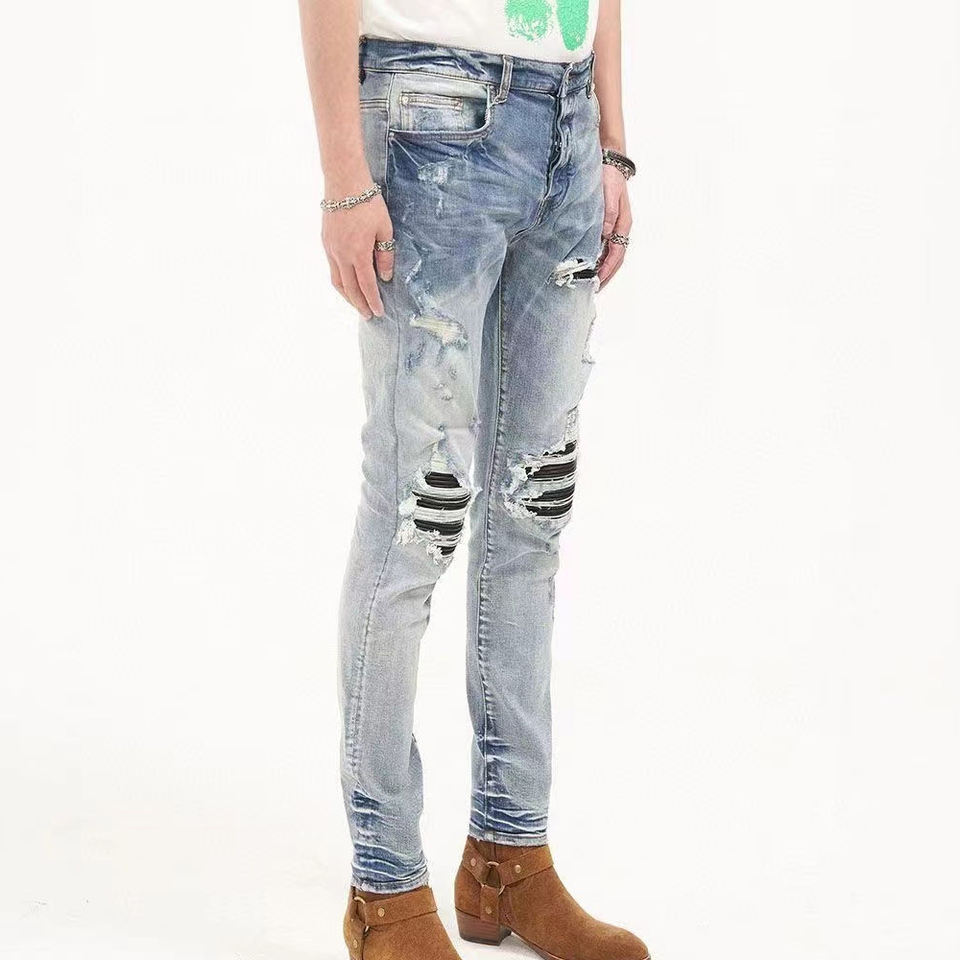 กางเกงยีนส์ผู้ชายกางเกงยีนส์ทรงตรงเข้ารูปวินเทจแนวสตรีทเข้ารูปปักลาย