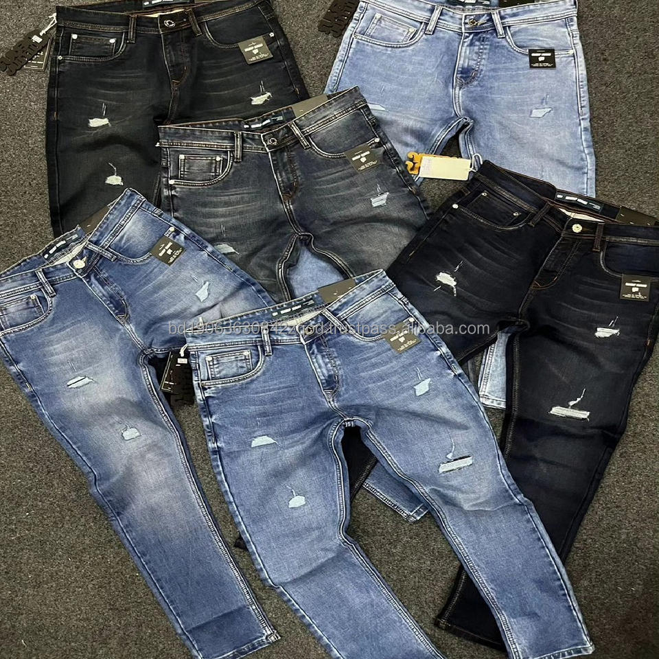 กางเกงยีนส์ผู้ชายแบบปะติดปะต่อ ตัดเย็บด้วยระบบอัตโนมัติ ย้อมสีแบบ Garment Dyed ทรงหลวม แต่งลายเสือดาว ปักลายฮิปฮอป กางเกงเดนิมผู้ชาย
