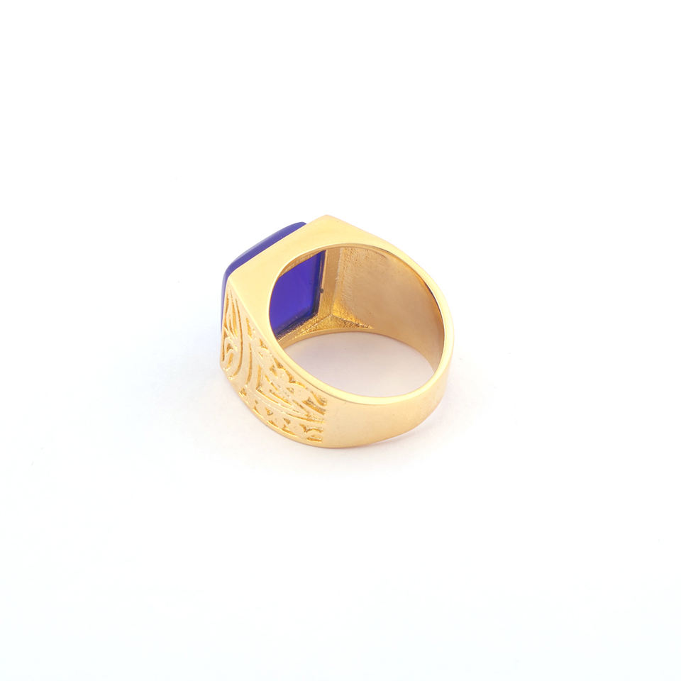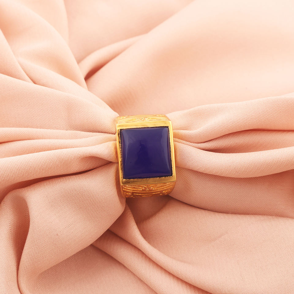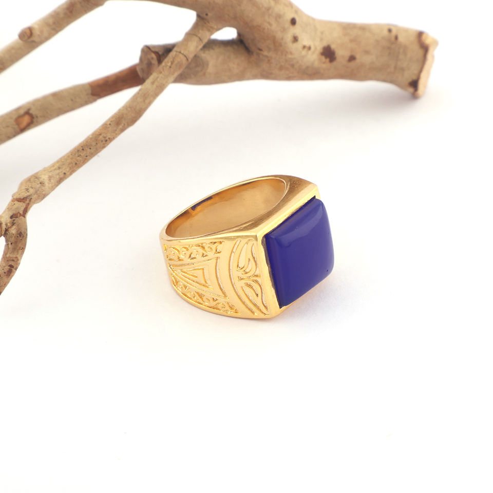 เครื่องประดับสำหรับผู้ชายเครื่องประดับ12มม. ทรงสี่เหลี่ยมแหวนดีไซน์แบบกอธิคสีฟ้าราชวงศ์แหวนทองเหลืองชุบทองแหวนแฟชั่นสำหรับสุภาพบุรุษ