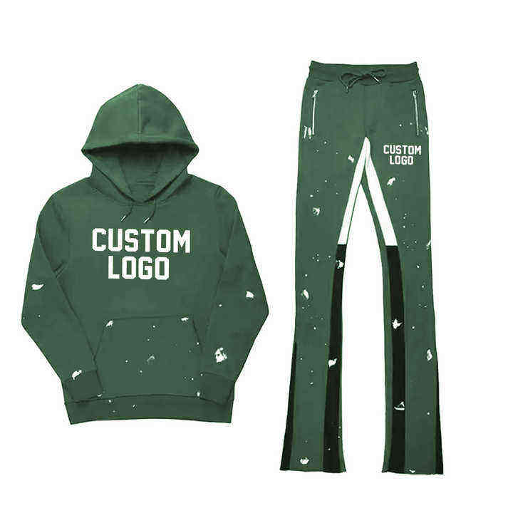 ชุดวอร์มผู้ชายแบบสั่งทำโลโก้ ชุดสองชิ้นผ้าหนา กางเกงทรงบาน พิมพ์ลายพัฟ ชุดสเวตสูท ชุดแทรคสูทโอเวอร์ไซส์
