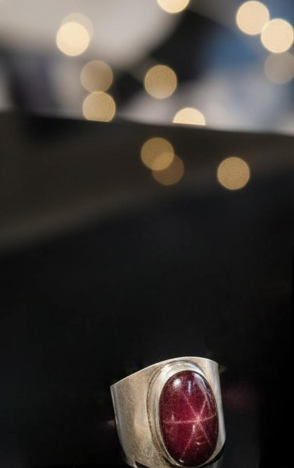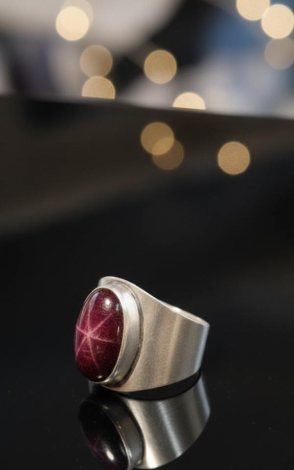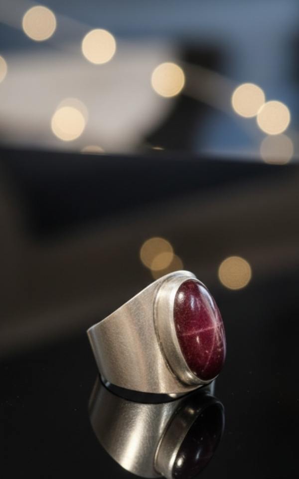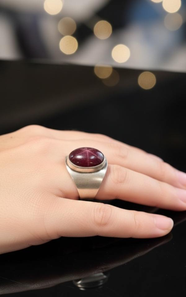 Men's July Birthstone Premium 925 Sterling Silver Handmade Bezel Setting Vintage Style Star Ruby Natural Stone Wedding Ring