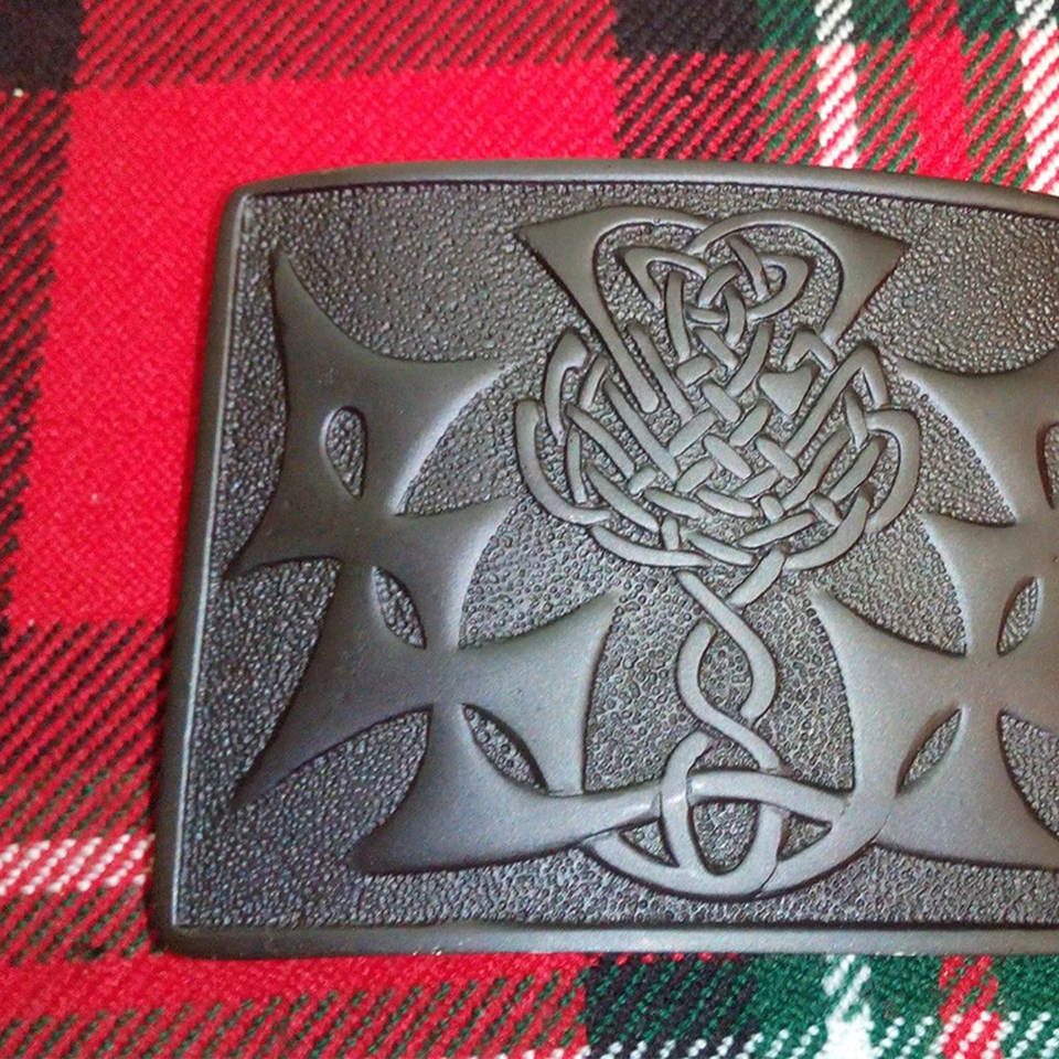 หัวเข็มขัดทรงสก็อตของผู้ชายสีดำหัวแบนเรียบเนียน