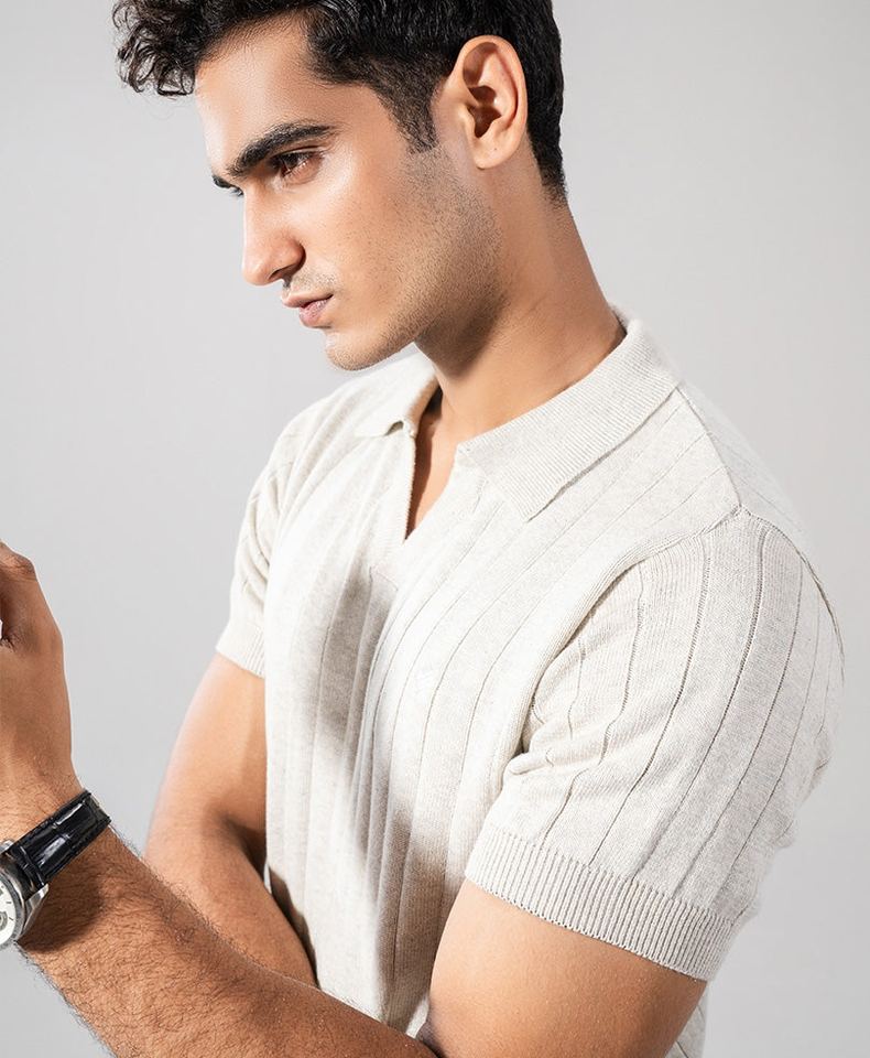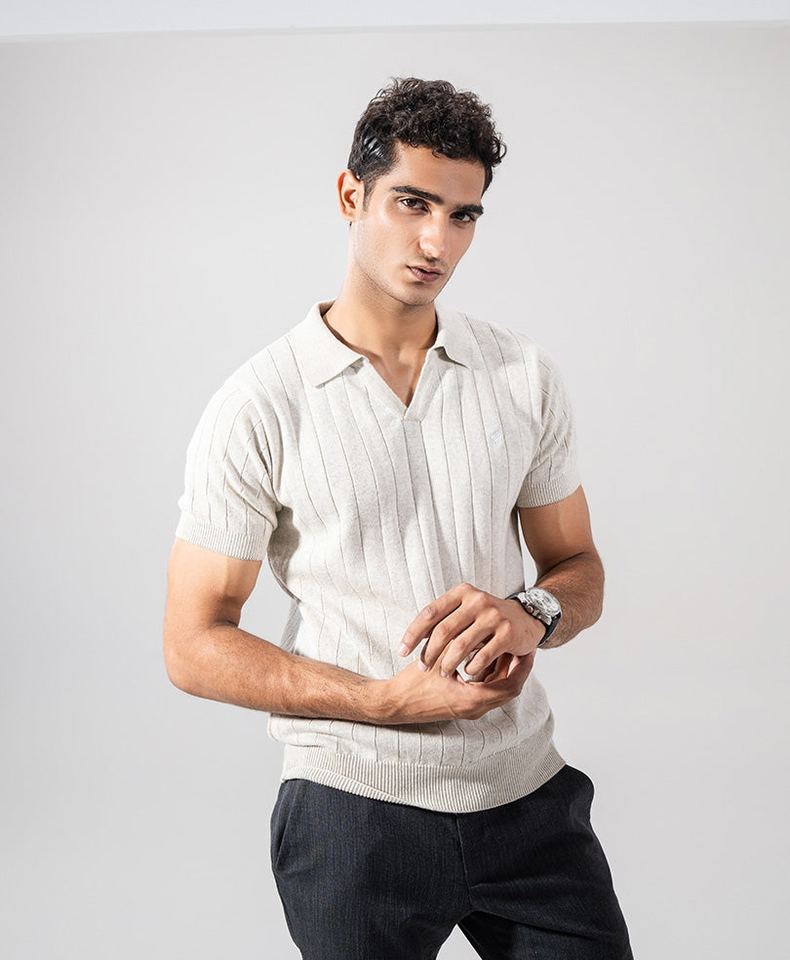 Men's Knit Polo Shirts Short Sleeve Vintage Striped Casual Golf Polo Classic Collared T Shirt Textured Slim Fit Pullover