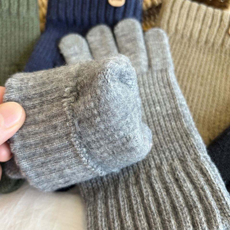 ถุงมือไหมพรมถักกันหนาวสำหรับผู้ชายพิมพ์โลโก้รูปกวางหนาใช้ภายนอกจอสัมผัสให้ความอบอุ่น