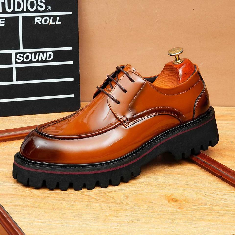 รองเท้าหนังแท้สไตล์เกาหลีสำหรับผู้ชาย อเนกประสงค์ ลำลอง น้ำหนักเบา พื้นหนา เพิ่มความสูง