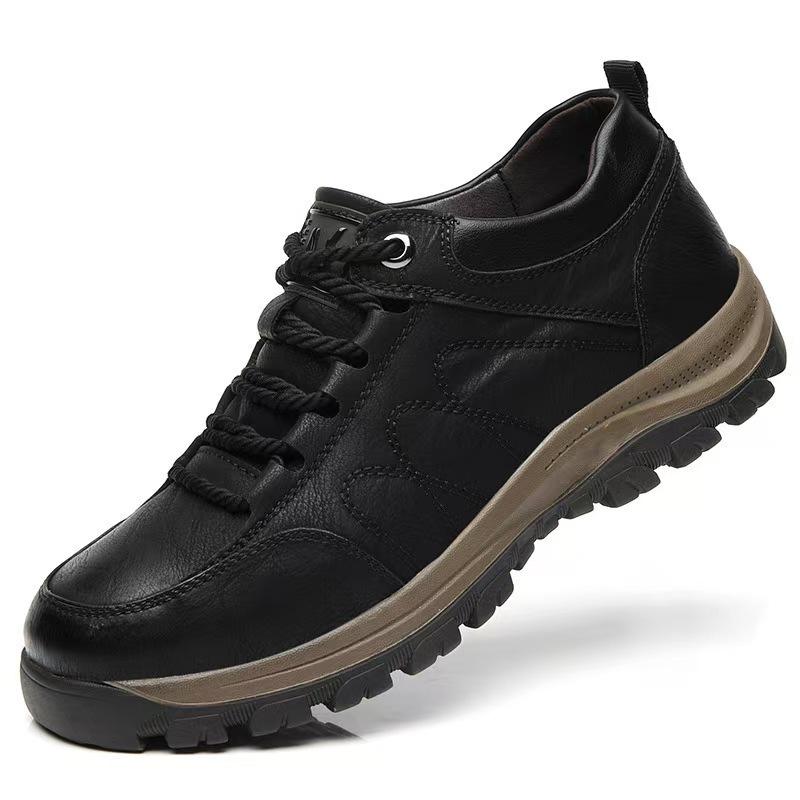 รองเท้าผ้าใบผู้ชายแบบผูกเชือก สีน้ำตาล หนังแท้ ส้นกลาง ระบายอากาศได้ดี ซับในผ้าตาข่าย เหมาะสำหรับเดินเล่นกลางแจ้ง ท่องเที่ยว สไตล์ลำลอง สปอร์ต