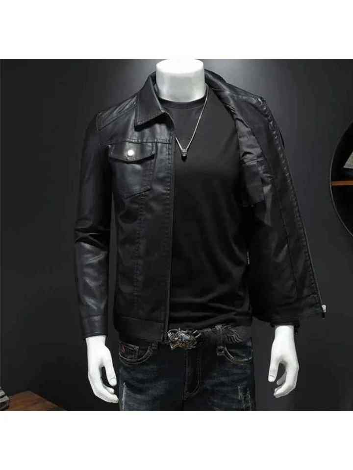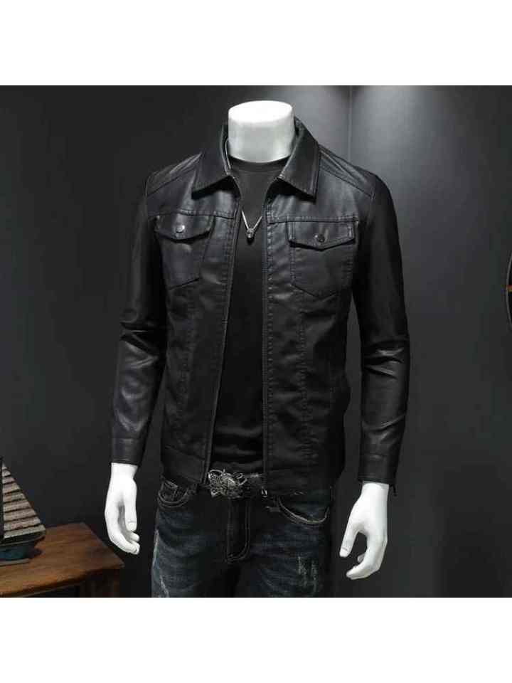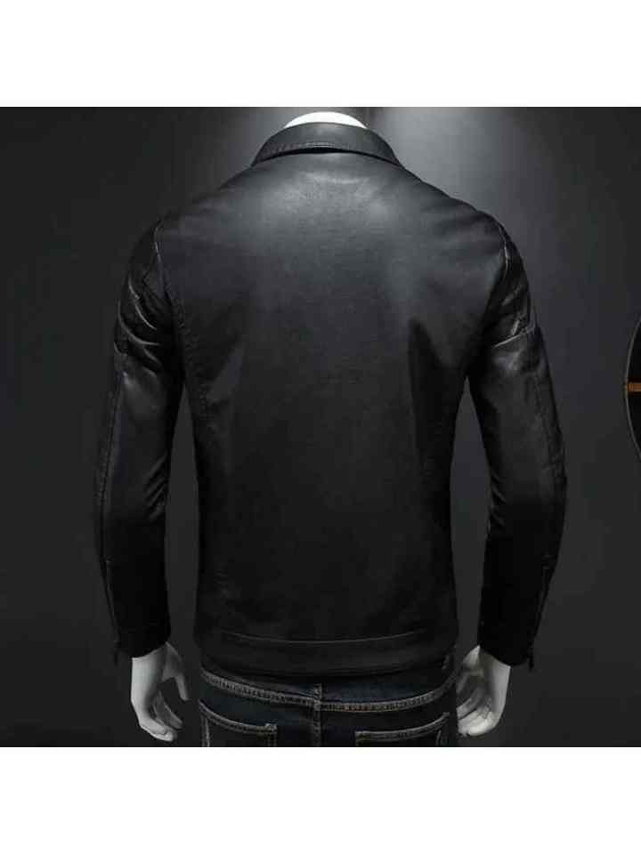 เสื้อแจ็คเก็ตหนังผู้ชายแบบมีปก สไตล์โอเวอร์ไซส์ ทรงสลิม เหมาะสำหรับขี่มอเตอร์ไซค์ ฤดูใบไม้ร่วงและฤดูหนาว หนัง PU หนา กันน้ำ ใช้เป็นเสื้อทำงานได้