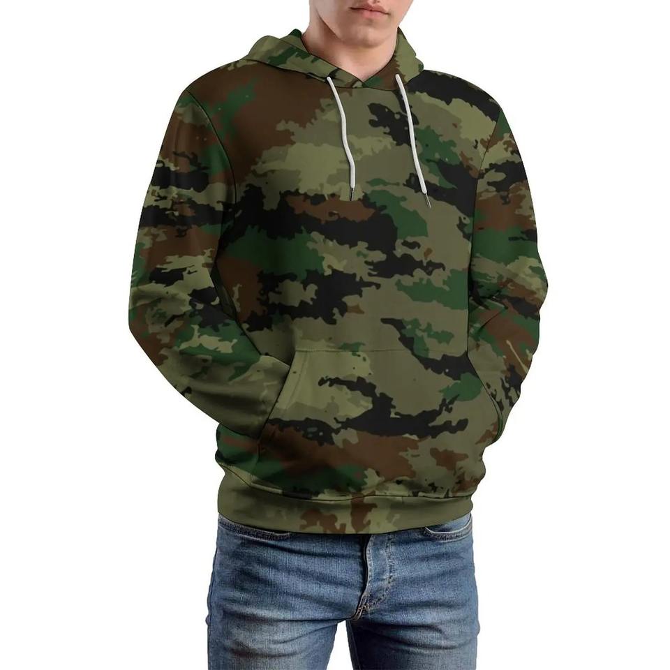 เสื้อสเวตเตอร์แบบสวมหัวมีฮู้ดลายพรางตัวใหญ่สำหรับผู้ชายเสื้อสเวตเตอร์แบบมีเชือกระบายอากาศป้องกันไฟฟ้าสถิตย์ใส่สบายฤดูใบไม้ร่วงฤดูหนาว
