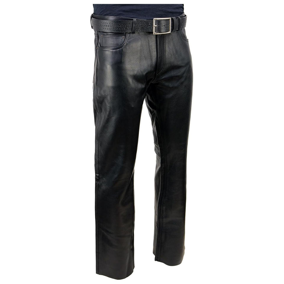 กางเกงหนังผู้ชายเอวกลางและแบบตรงกางเกงหนังใส่สบายทนทานสไตล์อเมริกันใหม่ล่าสุดดีไซน์ใหม่ล่าสุด