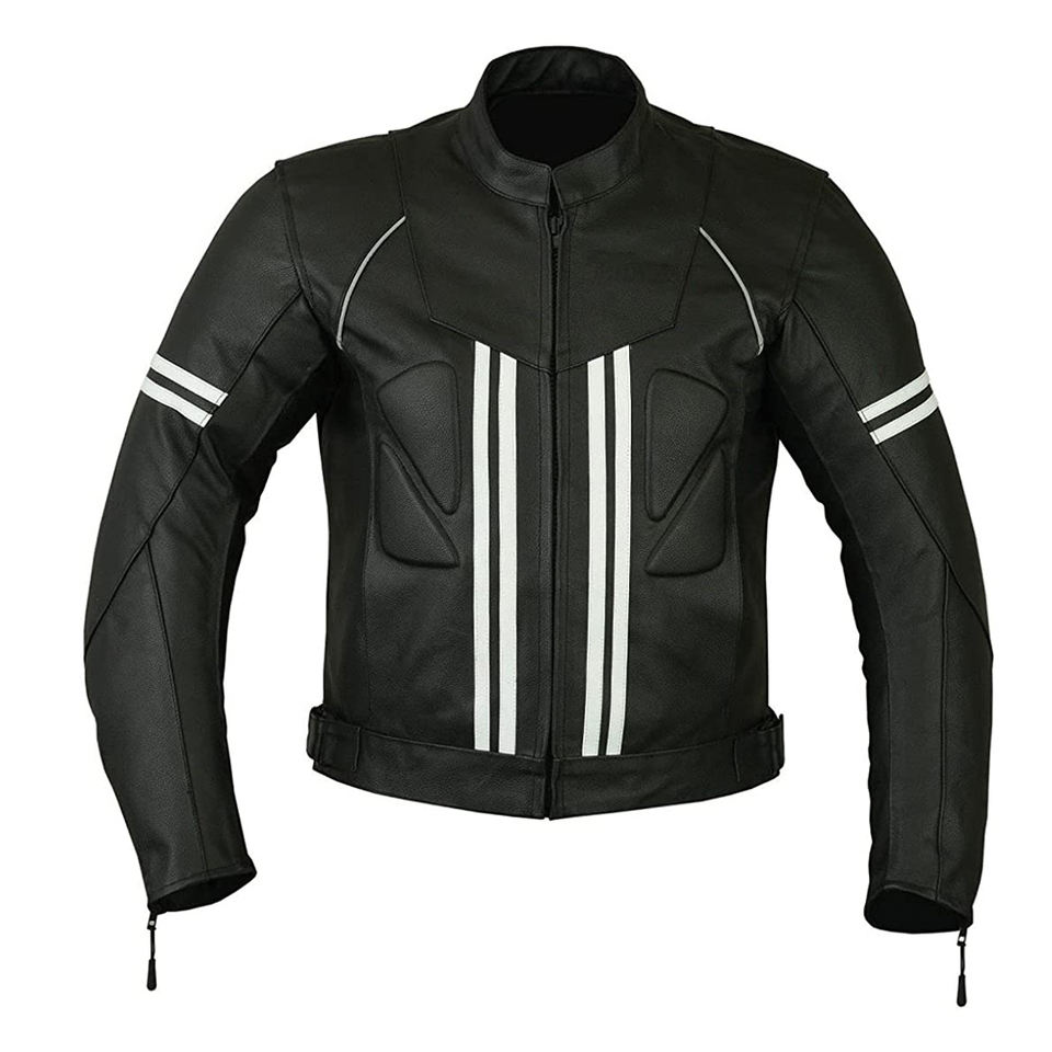 แจ็กเก็ตนักขี่จักรยานทำจากหนังสำหรับผู้ชายเสื้อคลุมมอเตอร์ไซด์ทำจากโรงงาน