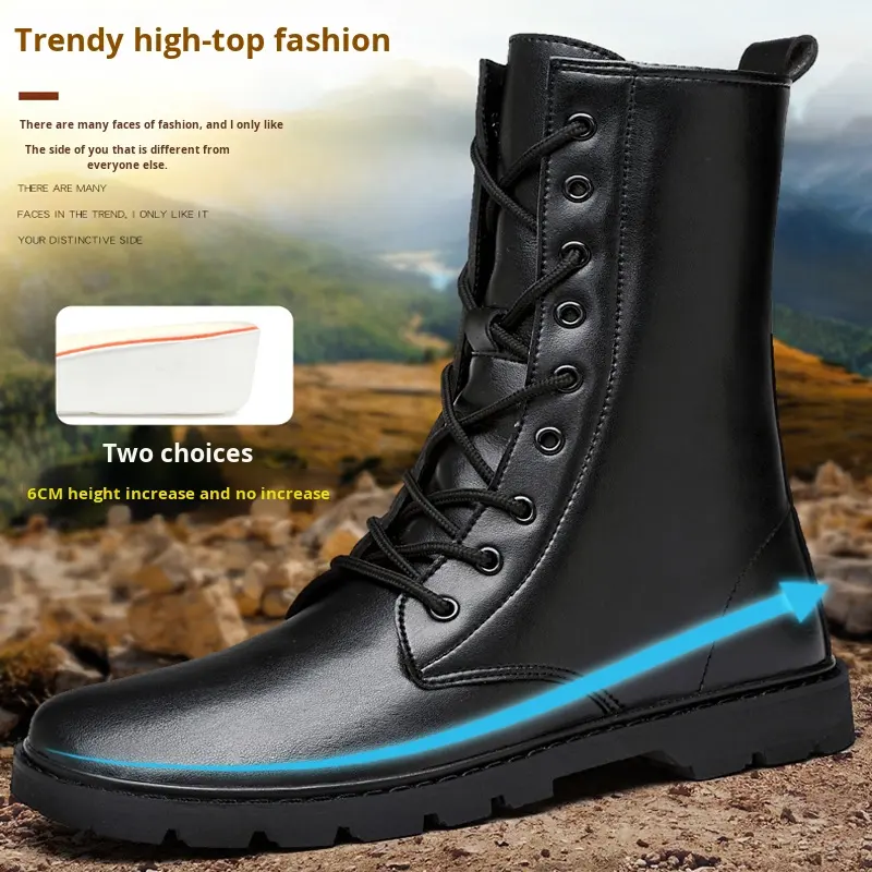 รองเท้าหนังผู้ชายฤดูใบไม้ร่วงและฤดูหนาวรองเท้าบูทหุ้มข้อผู้ชายแบบมีขนด้านในรองเท้าบูทมอเตอร์ไซค์กันลื่นที่สะดวกสบายรองเท้าผู้ชายฤดูหนาวที่อบอุ่น