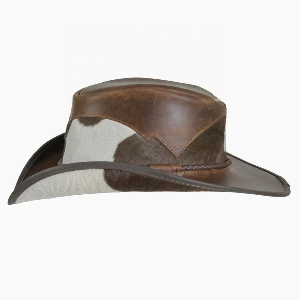 หมวกคาวบอยหนังของผู้ชายประดับด้วยหนังวัวหุ้มด้วยหนังวัวใหม่หมวกแฟชั่น