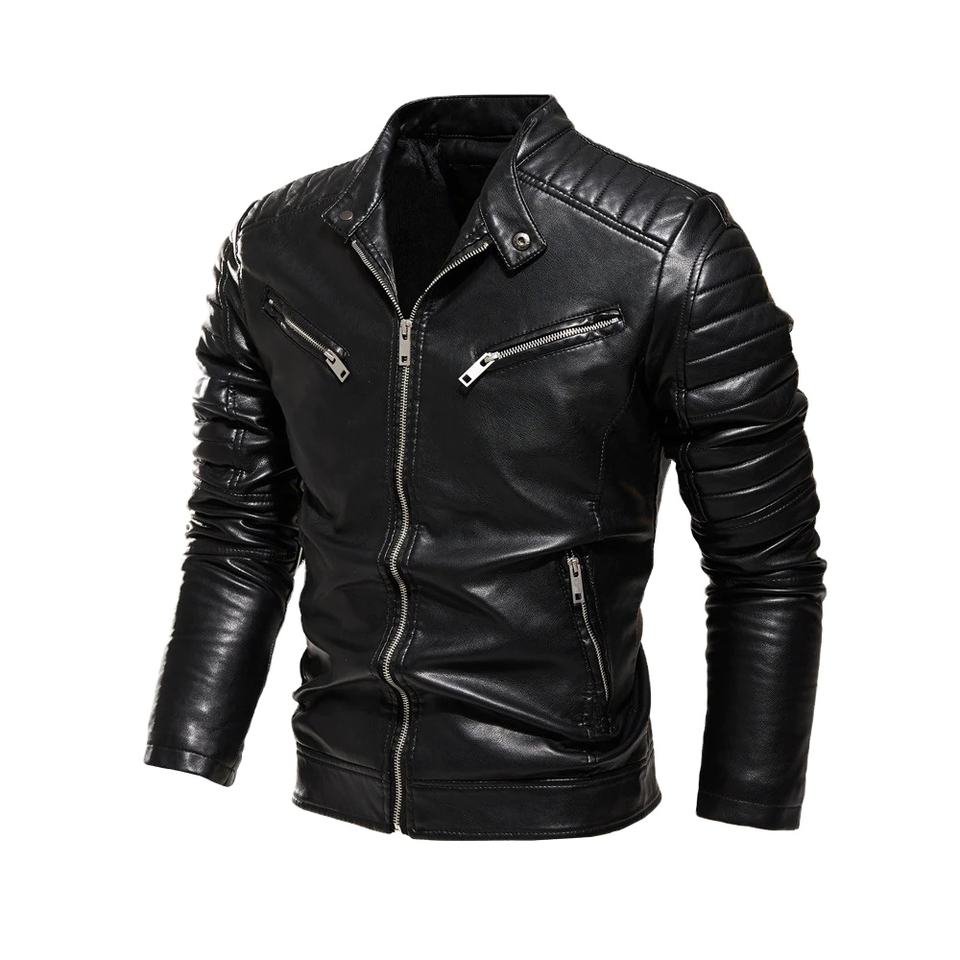 แจ็กเก็ตหนังของผู้ชาย,เสื้อโค้ทหนังลำลองมีซิปสำหรับขี่มอเตอร์ไซค์ฤดูใบไม้ร่วง