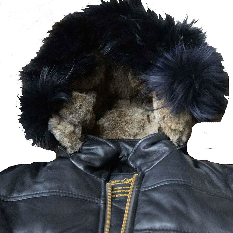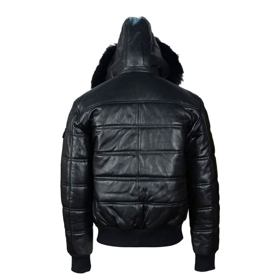 เสื้อแจ็คเก็ตหนังบุใยสังเคราะห์สำหรับผู้ชาย สไตล์แจ็คเก็ตบอมเบอร์ ทำจากหนังแกะแท้ สีดำ