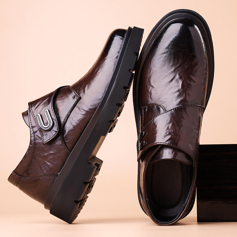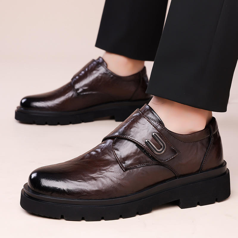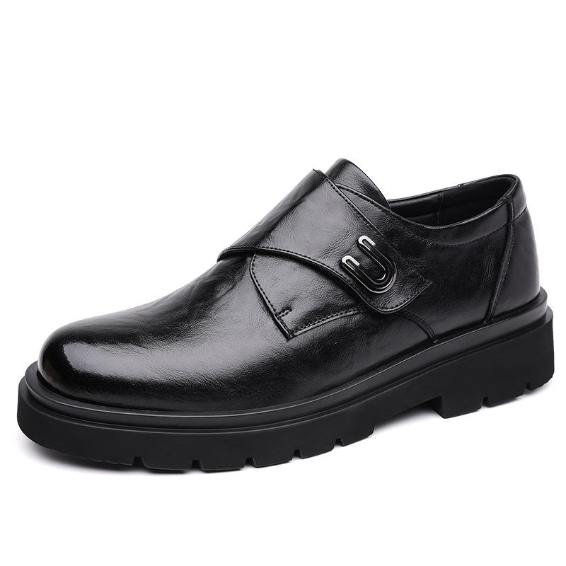 รองเท้าหนังผู้ชายส้นเตี้ยกันลื่นพื้นยางรองเท้าทำงานลำลองสำหรับสำนักงานสีดำขนาด 40-46