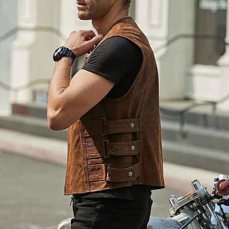 เสื้อกั๊กหนังสำหรับผู้ชาย, เสื้อแจ็คเก็ตกระดุมแถวเดียวเทรนด์แฟชั่นเกาหลีฤดูใบไม้ผลิและฤดูใบไม้ร่วง