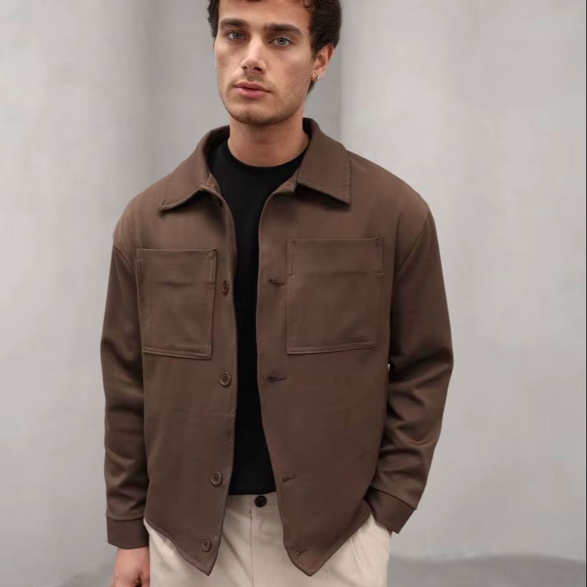แจ็กเก็ตคอวีสีเบจมีซิปสำหรับผู้ชาย, เสื้อโค้ทลำลองแขนยาวเรียบง่ายเสื้อโค้ทขนเป็ดกันน้ำระบายอากาศได้ดี