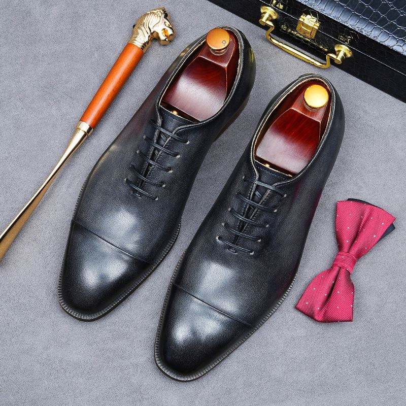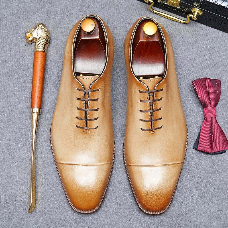 รองเท้าอ็อกซ์ฟอร์ดหนังแท้สีอ่อนสำหรับผู้ชาย - หัวรองเท้าแบบ Cap-Toe, ซับในหนังวัว, สำหรับธุรกิจและงานทางการ, สไตล์อังกฤษ