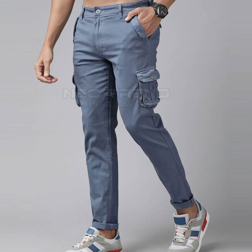 กางเกงคาร์โก้ลำลองสำหรับผู้ชายผ้าคอตตอน100% น้ำหนักเบาระบายอากาศได้ดีแบบตรงเอวกลางซักสีเข้มสำหรับสตรีทแวร์ & วิ่ง