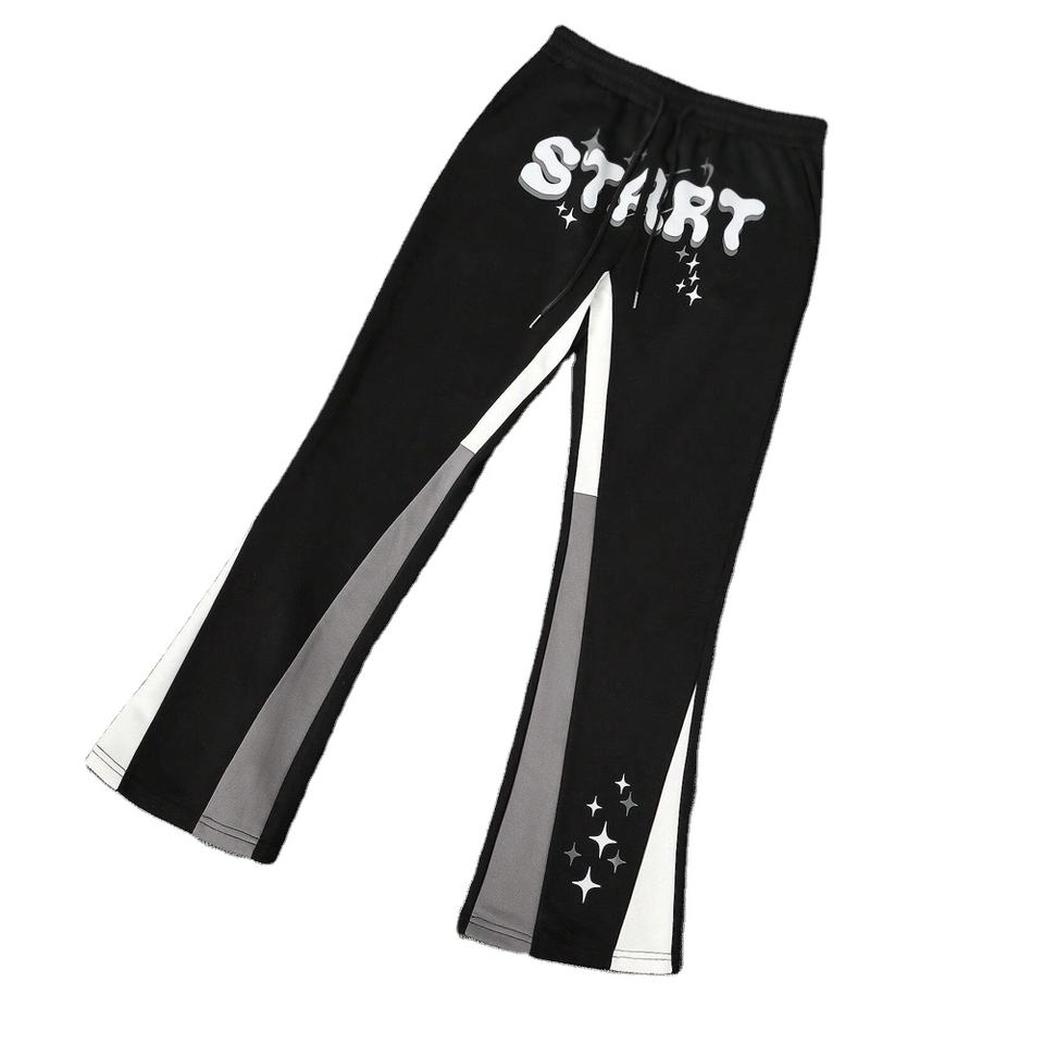 กางเกงวอร์มผ้าฝ้าย100% ซักแล้วสำหรับผู้ชายกางเกงขาบานสไตล์กีฬาลำลองแบนมีกระเป๋าเชือกรูดด้านหน้า