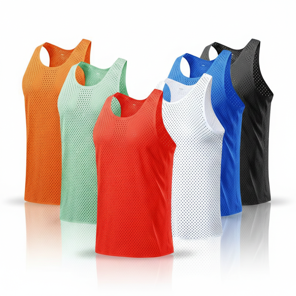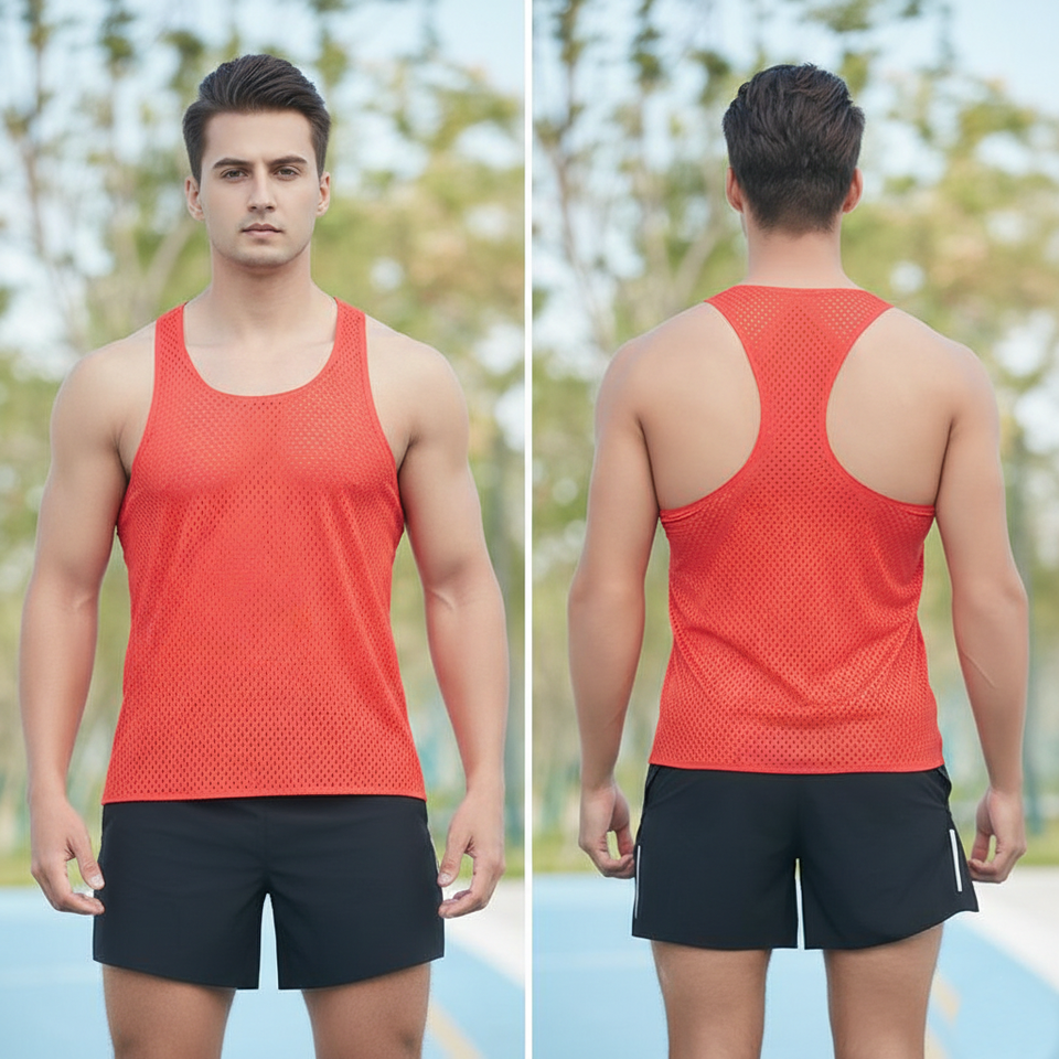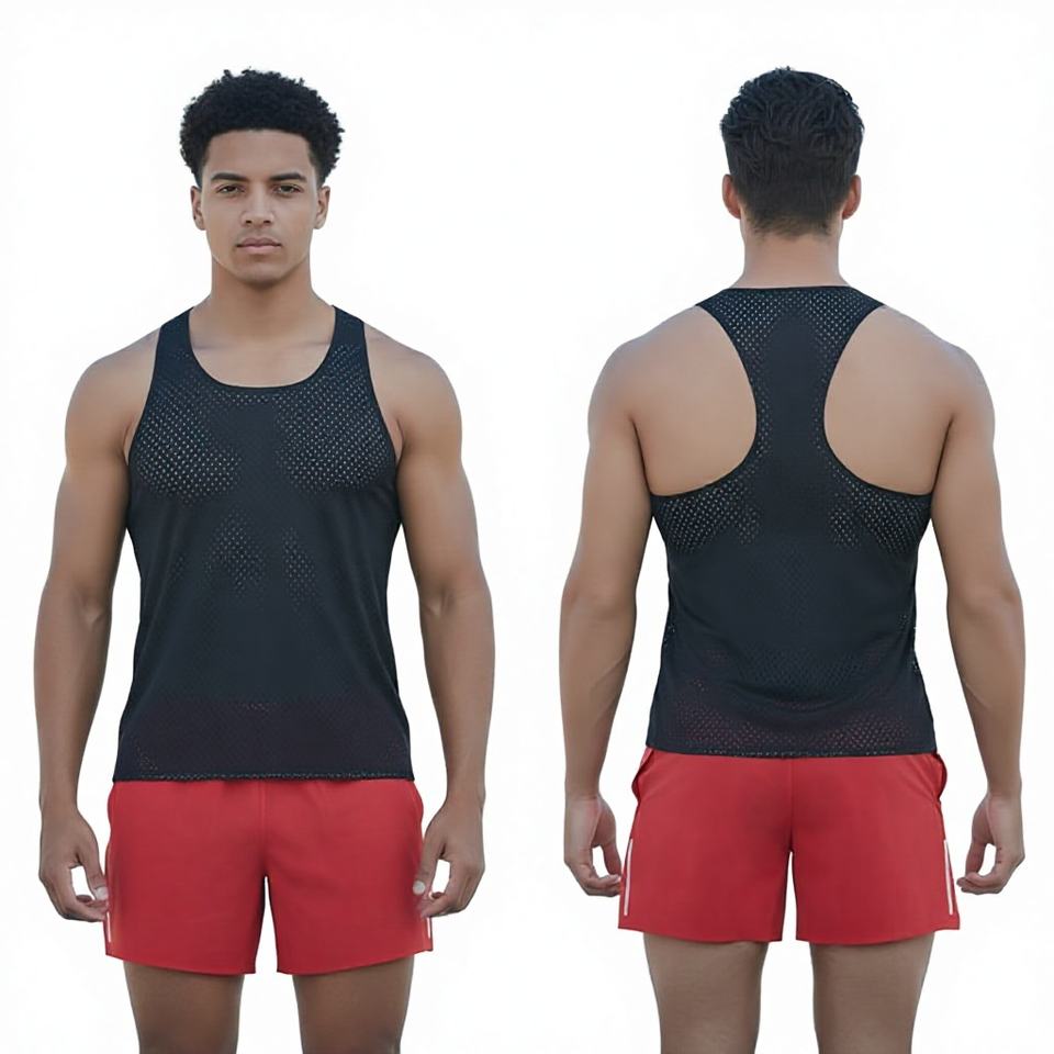 เสื้อกล้ามวิ่งผู้ชาย น้ำหนักเบา ผลิตจากโพลีเอสเตอร์ 100% ป้องกันการเป็นขุย พิมพ์ลายแบบซับลิเมชั่น คอกลม สำหรับการฝึกซ้อมมาราธอน