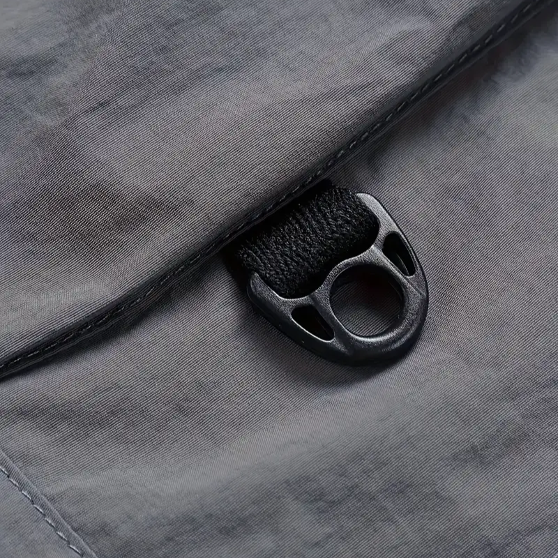 กางเกงขาสั้นกีฬาน้ำหนักเบาของผู้ชาย-ลำลองทรงหลวมกับเอวเชือกผูกสีพื้นไนลอน-เหมาะสำหรับฤดูใบไม้ผลิและฤดูร้อน