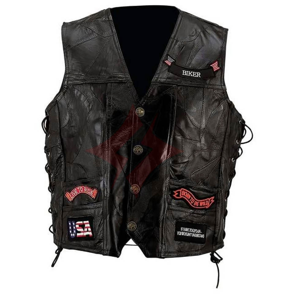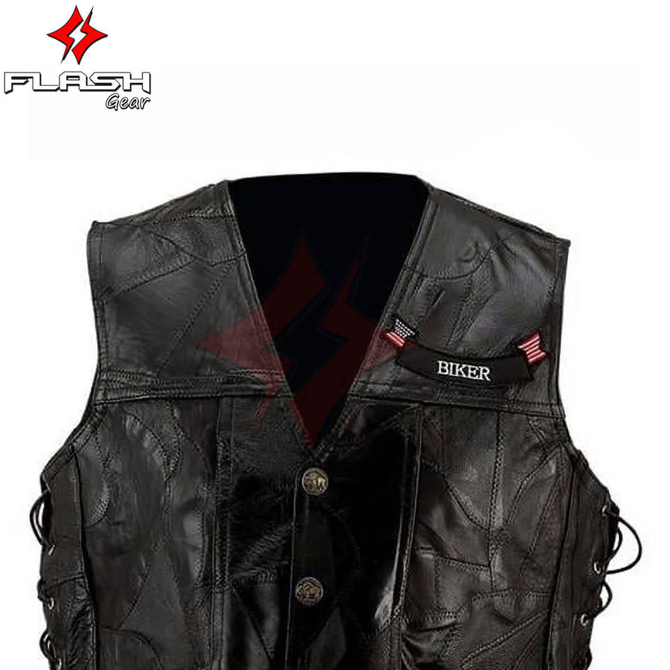 Men's Lightweight Breathable Leather Motorcycle Jacket Vest Sleeveless Vintage Winter Zipper Closure Casual Streetwear Patchwork