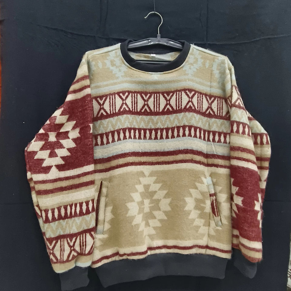 เสื้อสเวตเตอร์สีน้ำตาลน้ำหนักเบาสำหรับผู้ชายเสื้อจั๊มเปอร์ลายทางแจ็คการ์ดแอซเท็กขนาดใหญ่ลายทางสไตล์วินเทจทางตะวันตกเฉียงใต้