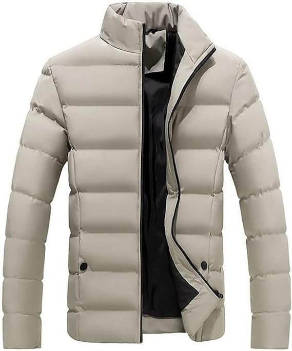 Men's Lightweight Canvas Puffer Jacket Winter Thermal Coat Hooded Stand Collar High Quality Low Price Gray Available for