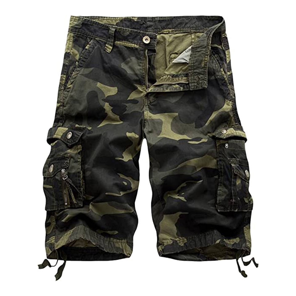 กางเกงขาสั้นคาร์โก้ผู้ชายลำลองรักษ์โลก น้ำหนักเบา ความยาวขาใน 9 นิ้ว กระเป๋าหลายช่อง เอวยางยืด เหมาะสำหรับทำงาน กิจกรรมกลางแจ้ง เดินป่า ปักลาย