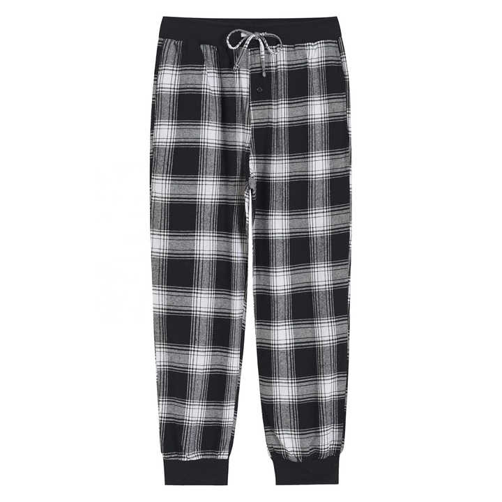 ชุดนอนผู้ชายผ้าฟลานเนลเนื้อเบา แห้งเร็ว ทรงหลวม ขายาว มีเชือกผูกเอวสูง ลายพิมพ์