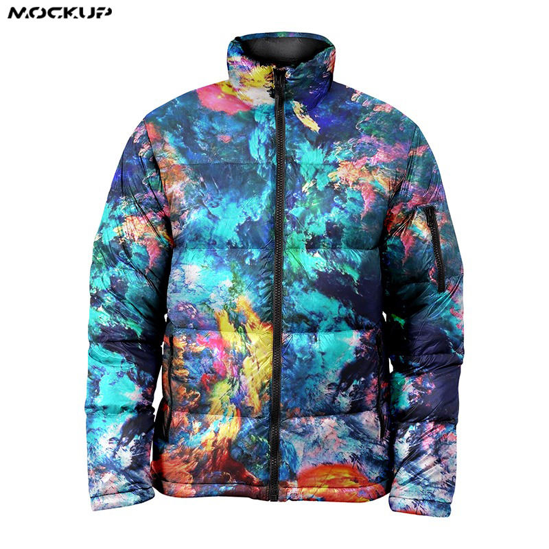 เสื้อแจ็คเก็ตบุนวมสำหรับผู้ชายเสื้อแจ็กเก็ตกีฬาพิมพ์ลายพิมพ์ซับลิเมชันเต็มรูปแบบใส่คอตั้งโลโก้ด้านหน้า
